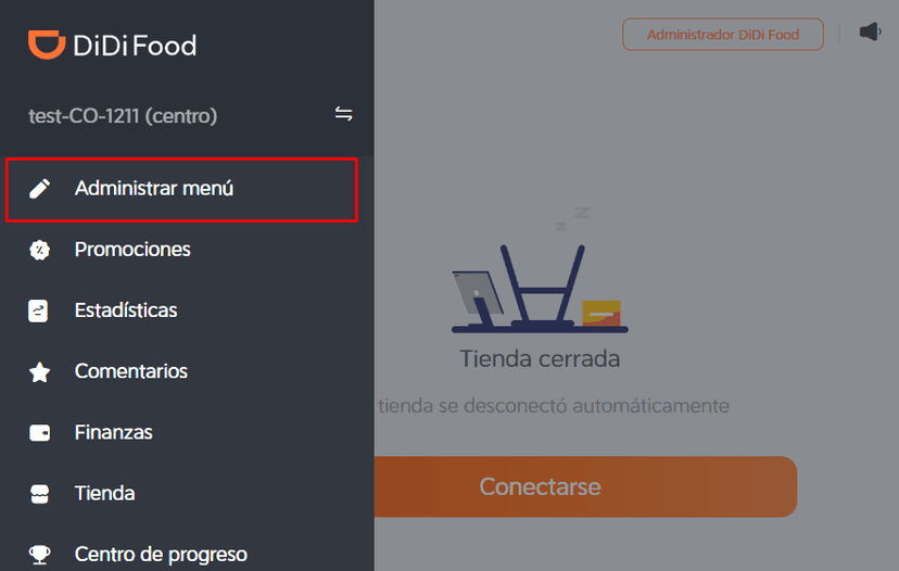 Selecciona la opción de administrar menú