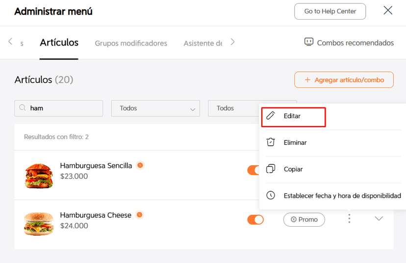 ¡Listo! Haz cambiado el precio de un producto en tu menú.