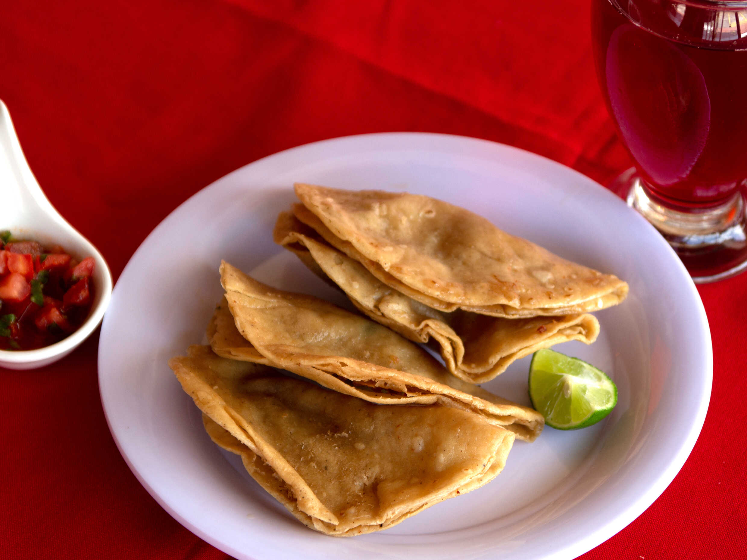 5 piezas de tacos dorados, carnitas , cebolla morada, aguacate y repollo, salsa ahogada salsa picante.