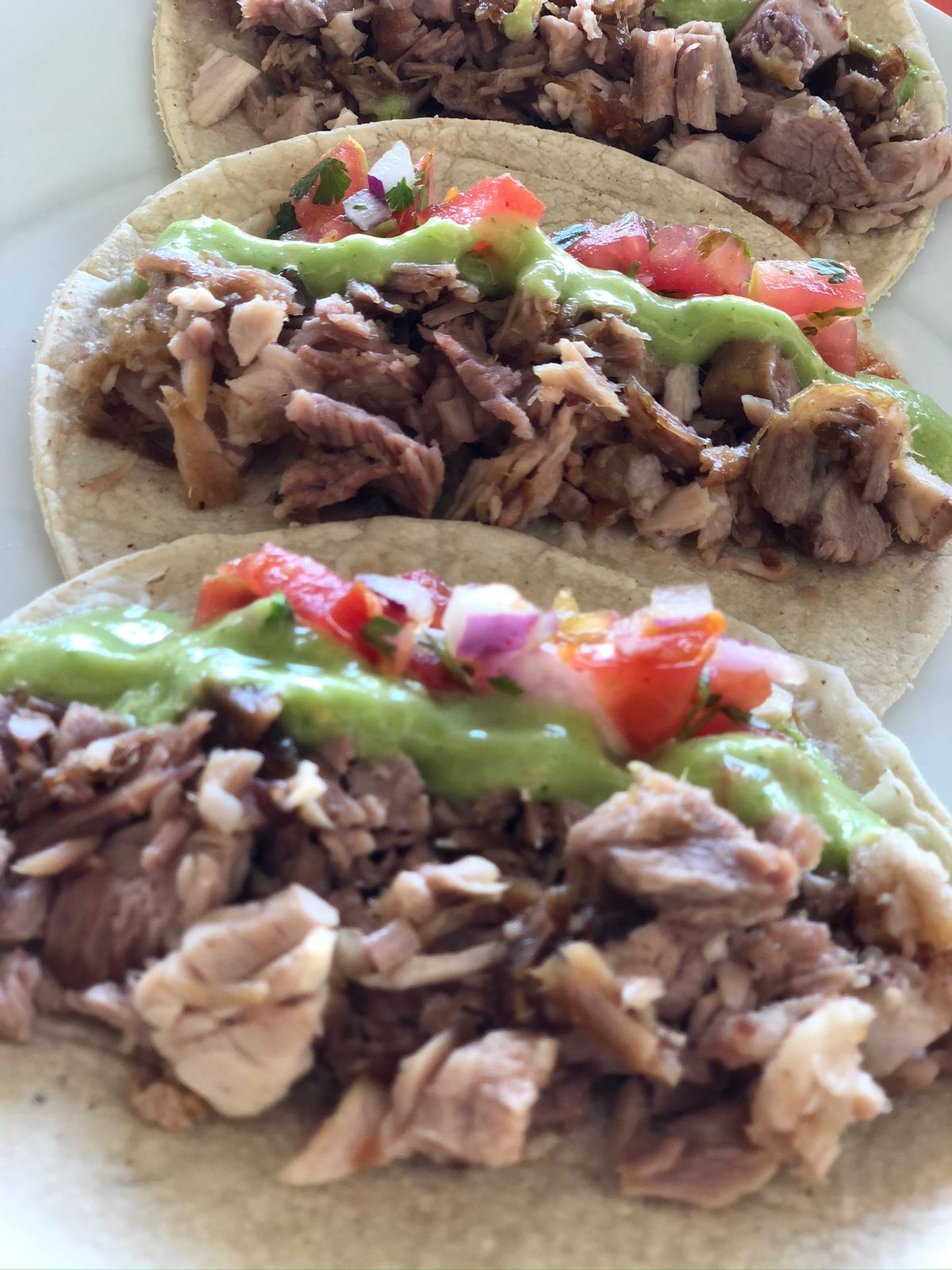 Sabrosos tacos de carnitas, contiene 100grs. de carnitas