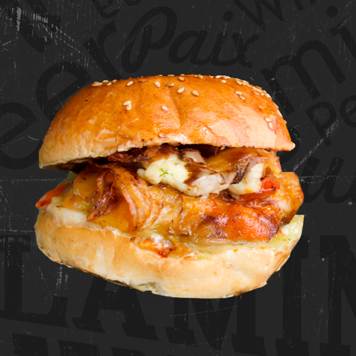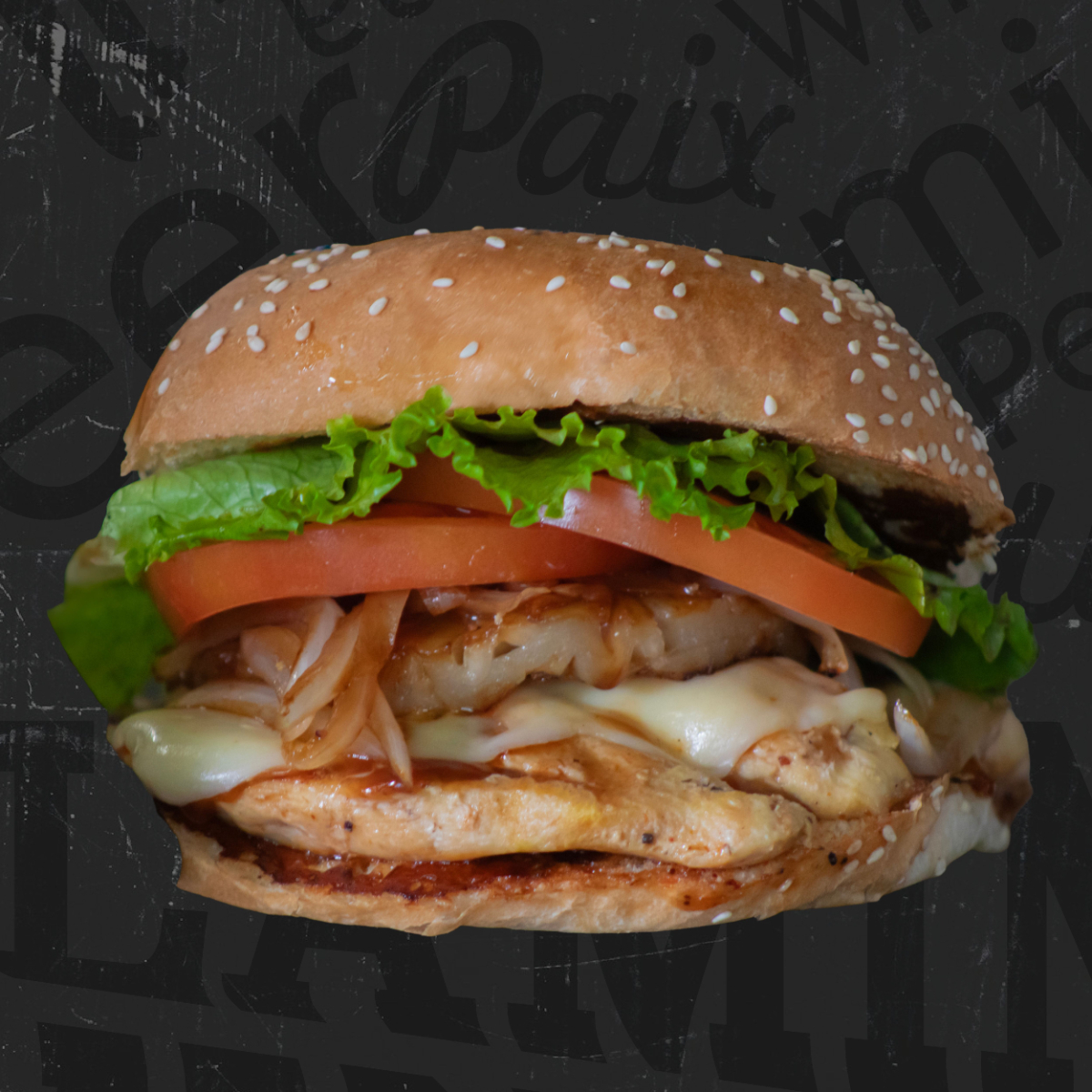 180 g De pechuga de pollo a la parrilla bañada con salsa teriyaki; piña asada, queso mozzarella, cebolla caramelizada, lechuga y jitomate; servida con papas gajo y aderezo de chipotle.