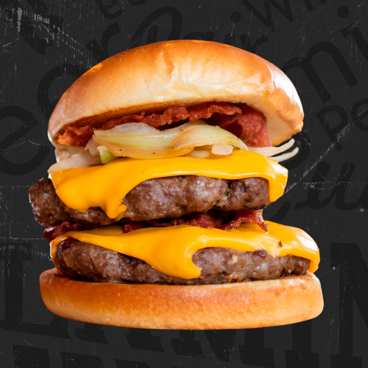 La burger que esperabas!!! doble carne de 200 g prime steak a la parrilla; doble queso cheddar, doble tocino y cebolla asada; servida con papas a francesa y chimichurri.