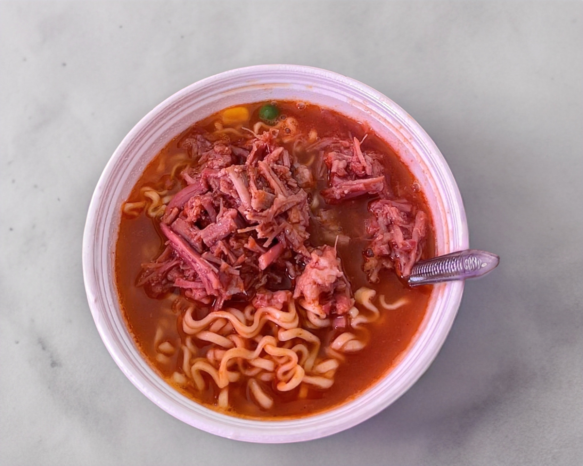 Ramen con consomé y birria de res.