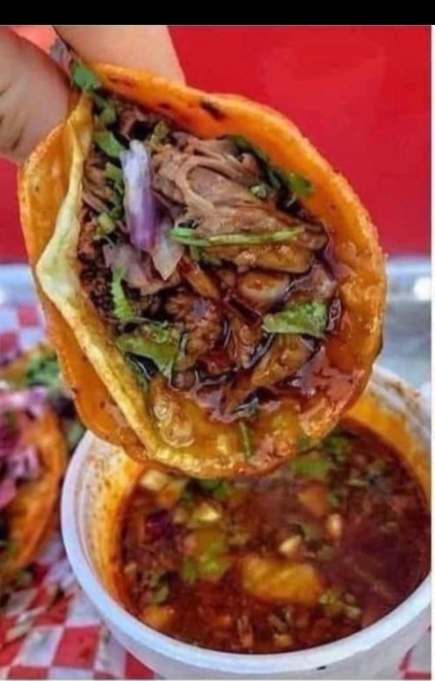 Tortilla de maíz con birria de res.