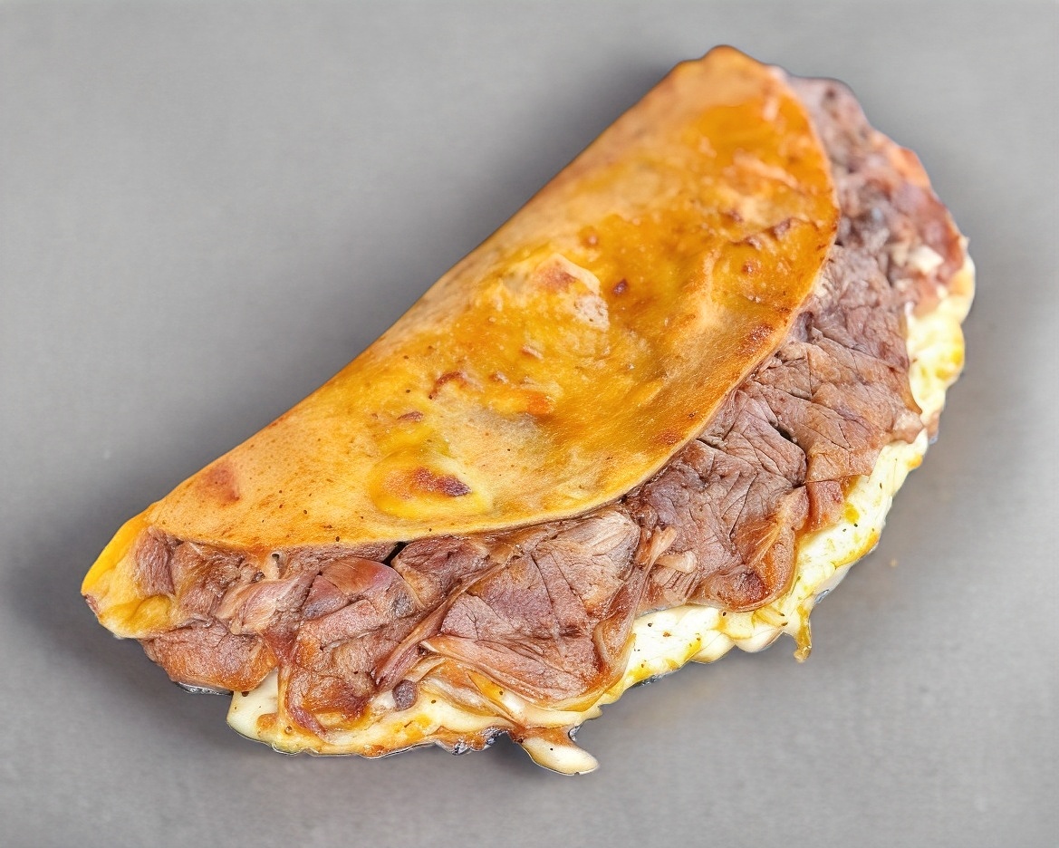 Tortilla de harina con queso y birria de res.