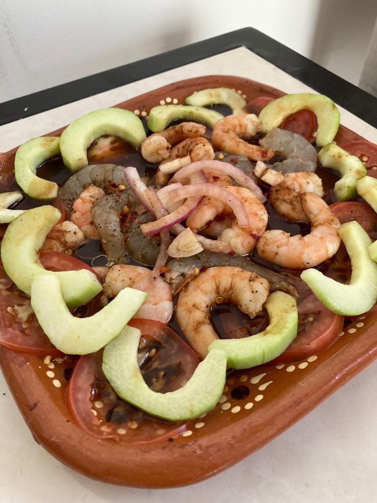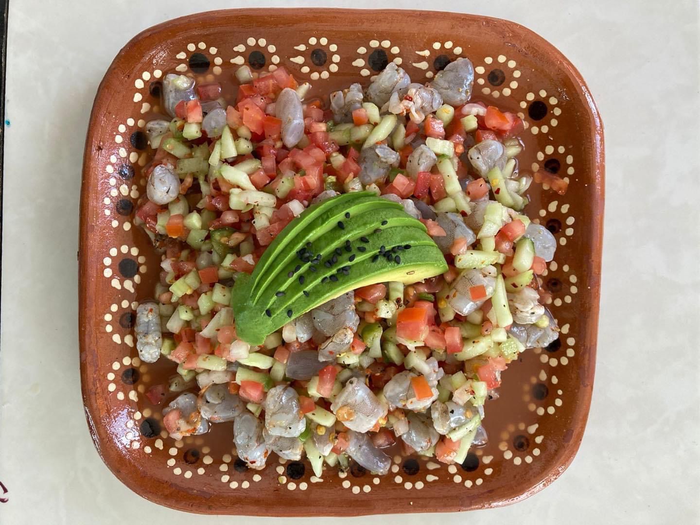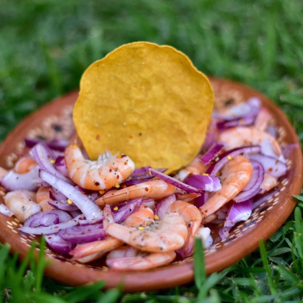 Camarón curtido con limón y verdura; realizados al momento.