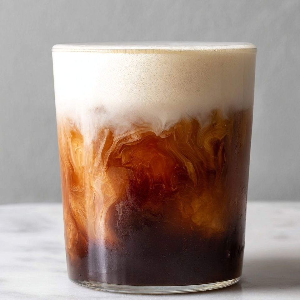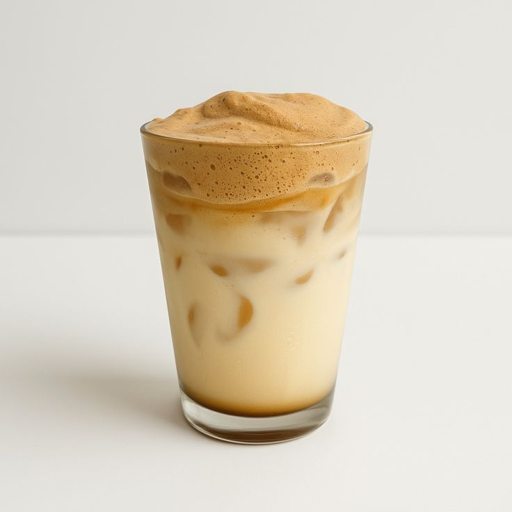 Café frío con espuma densa y dulce, estilo ¨batido de café¨