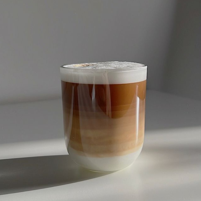 Espresso con leche espumada. Aromático con textura ligera.