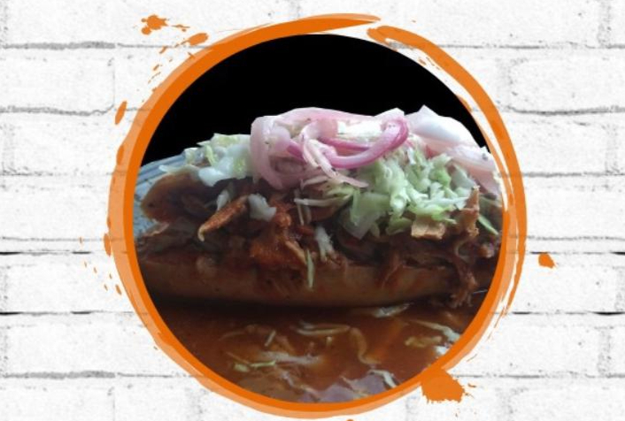 Birote con Carnitas, Panela, Pastor y Camaron acompañado de salsa dulce, picante col cebolla curtida y limones