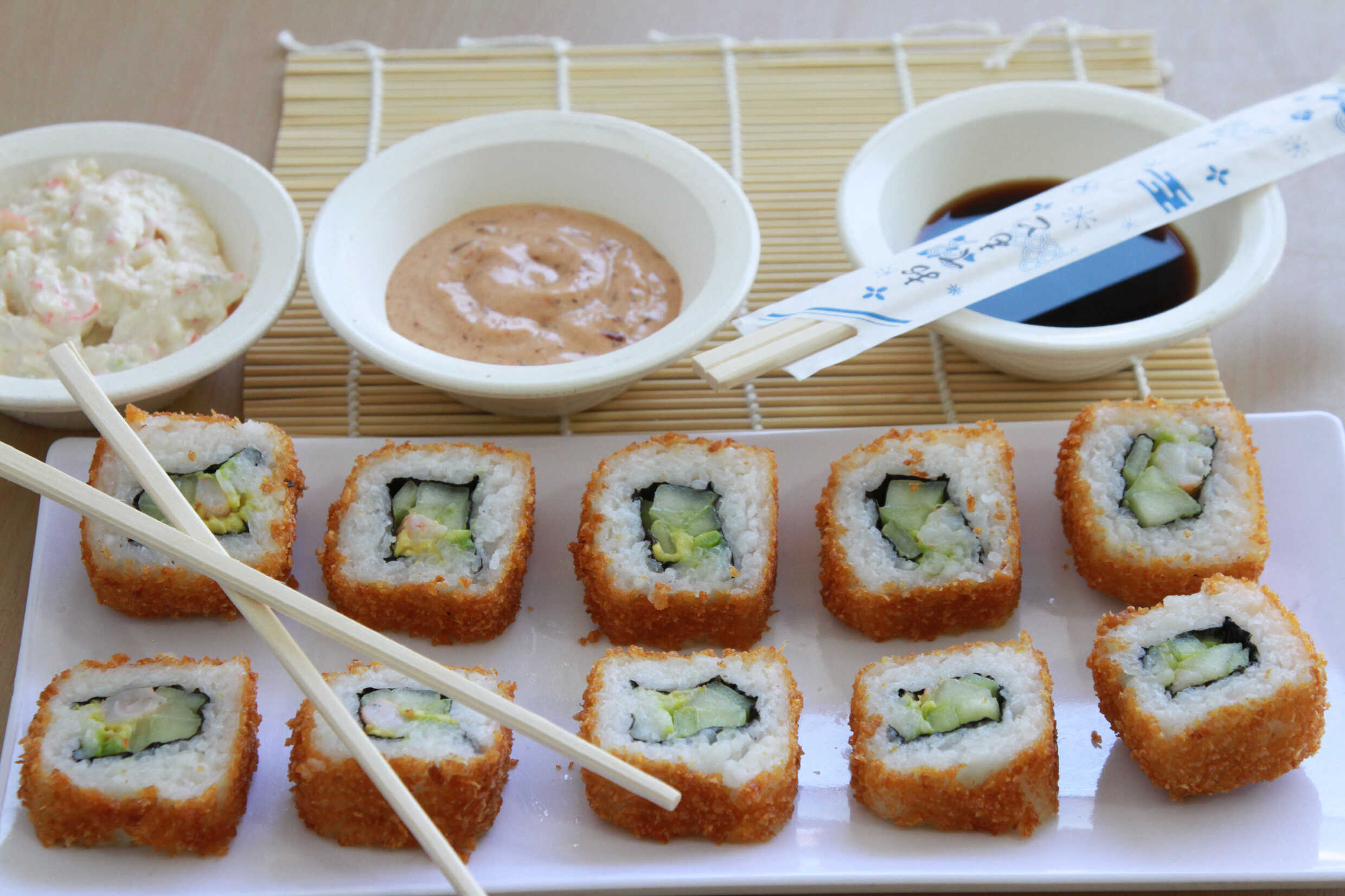 Dentro: Pepino, philadelphia y camaron Fuera:Aguacate y salsa kushiage