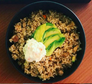 D aguacate, manchego y pollo F arroz