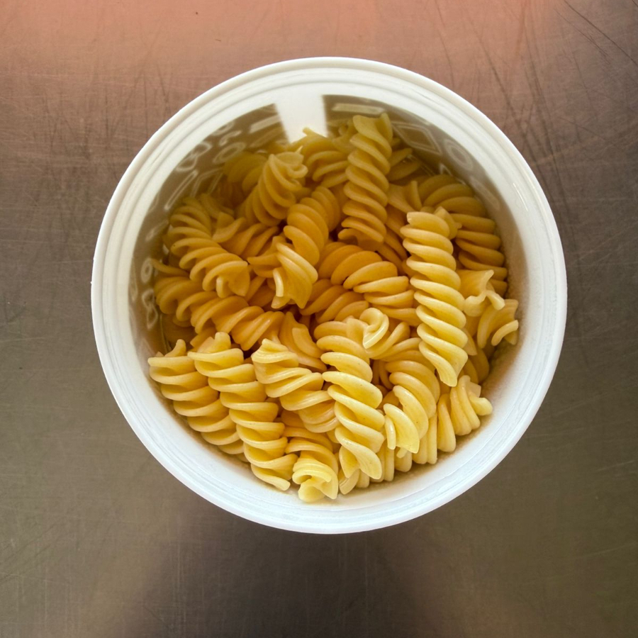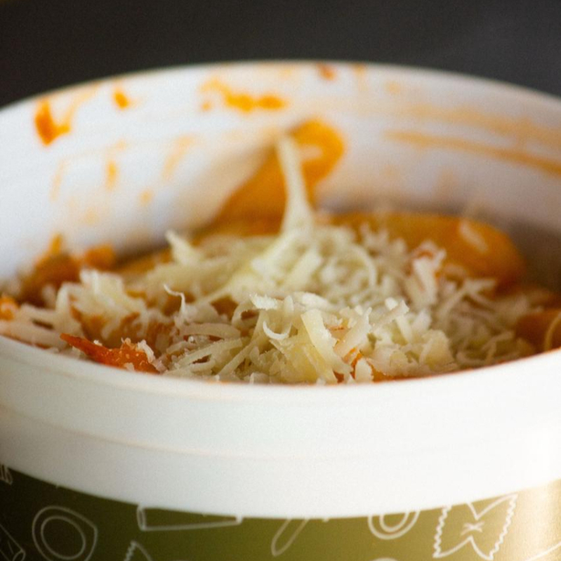 Pasta penne/Fusilli 450gr , tocino, chile quebrado y queso parmesano