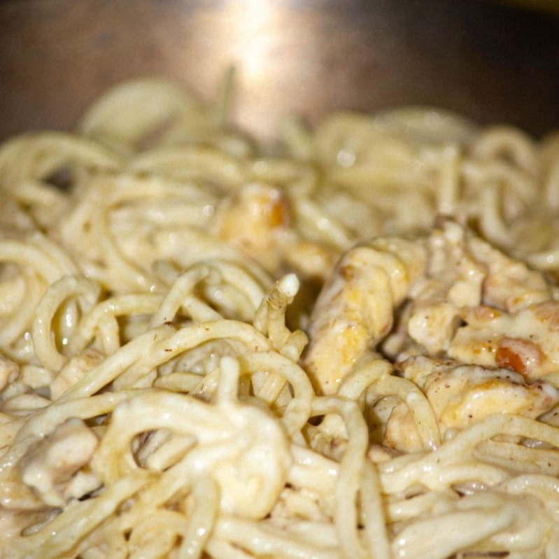 Pasta fetuccinne 450gr , salsa alfredo, pollo, queso parmesano