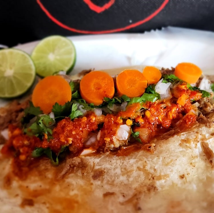 A escoger tu carne preferida, Acompañados de Zanahorias, Limones, Cebolla, Cilantro y salsa.