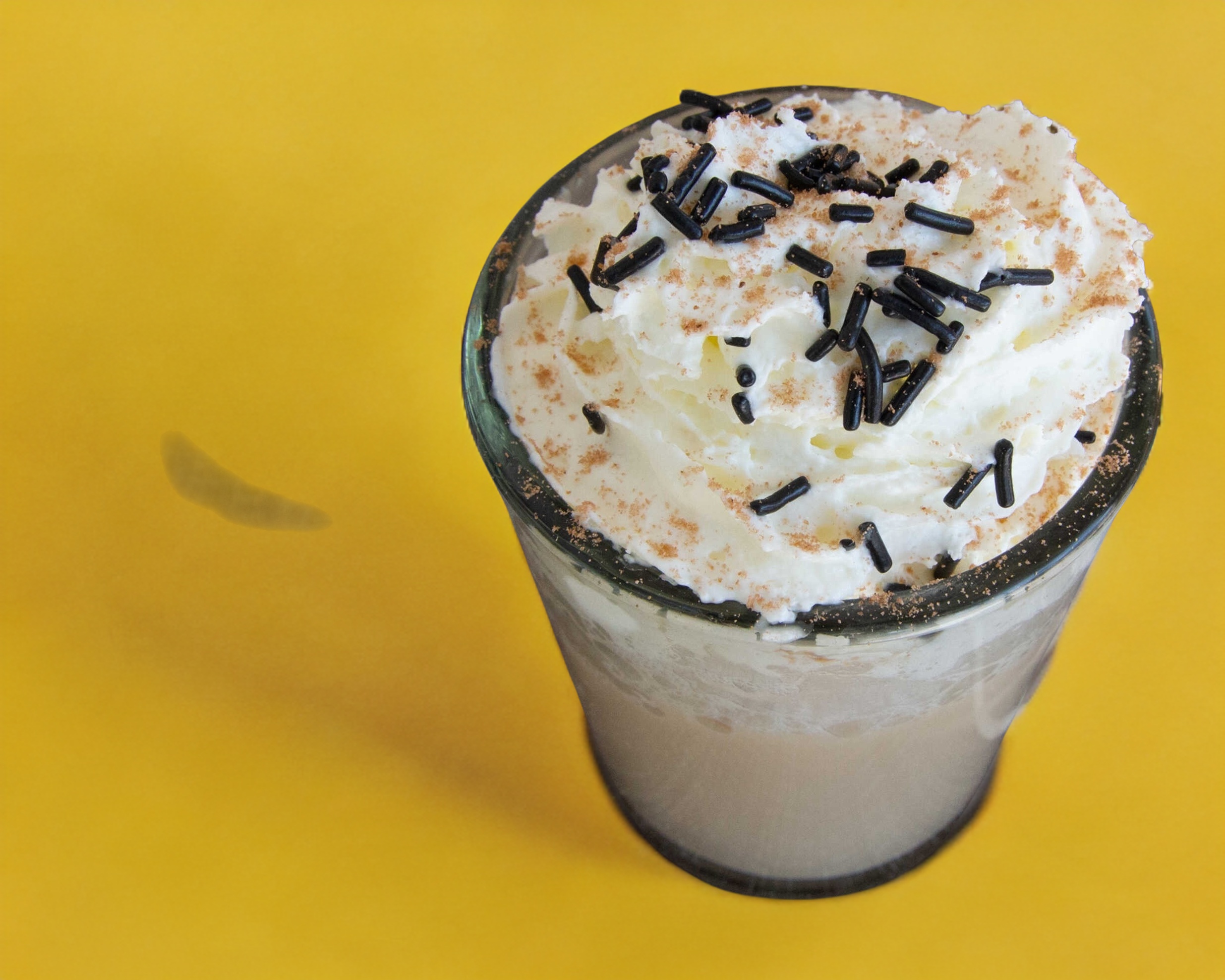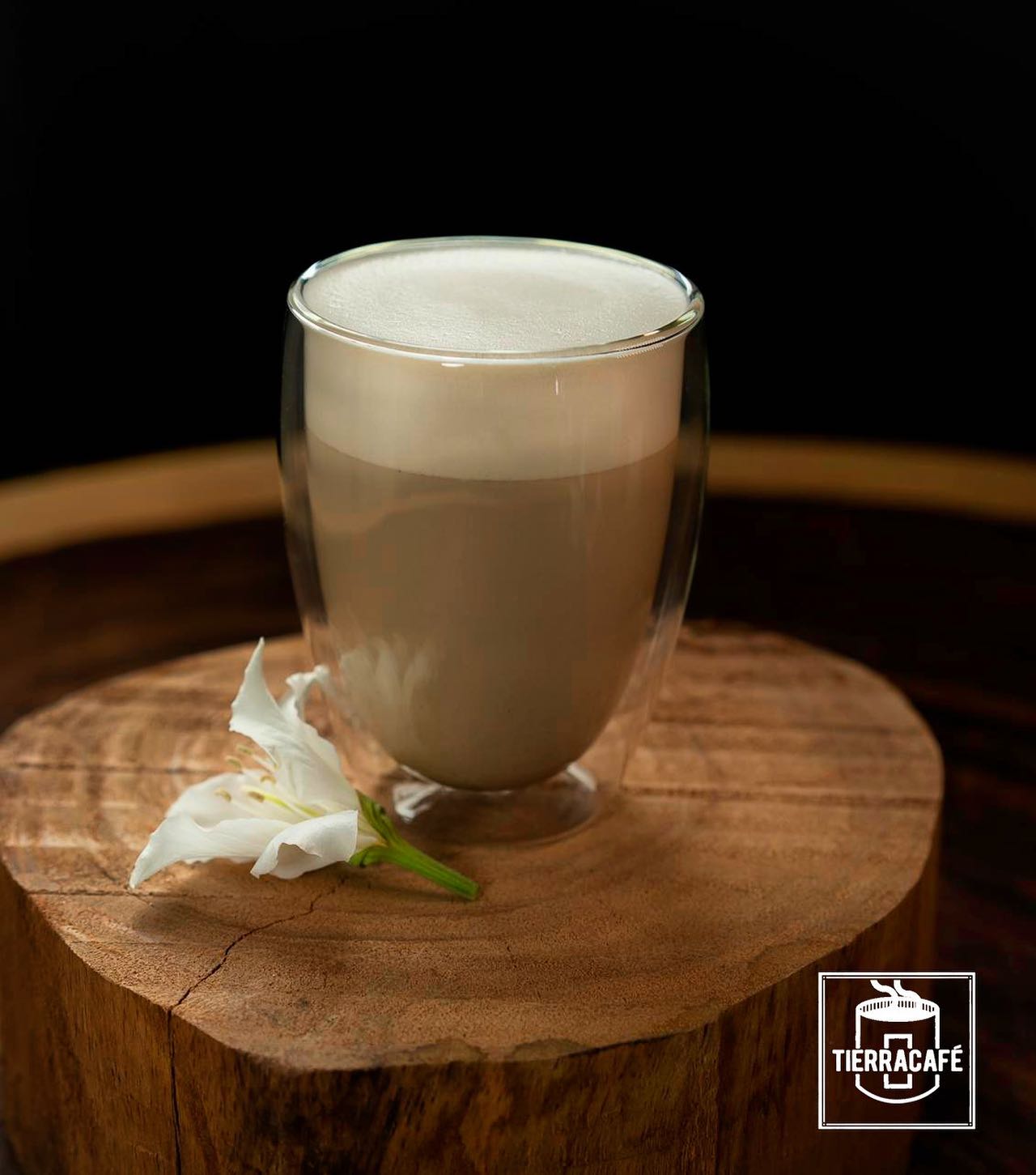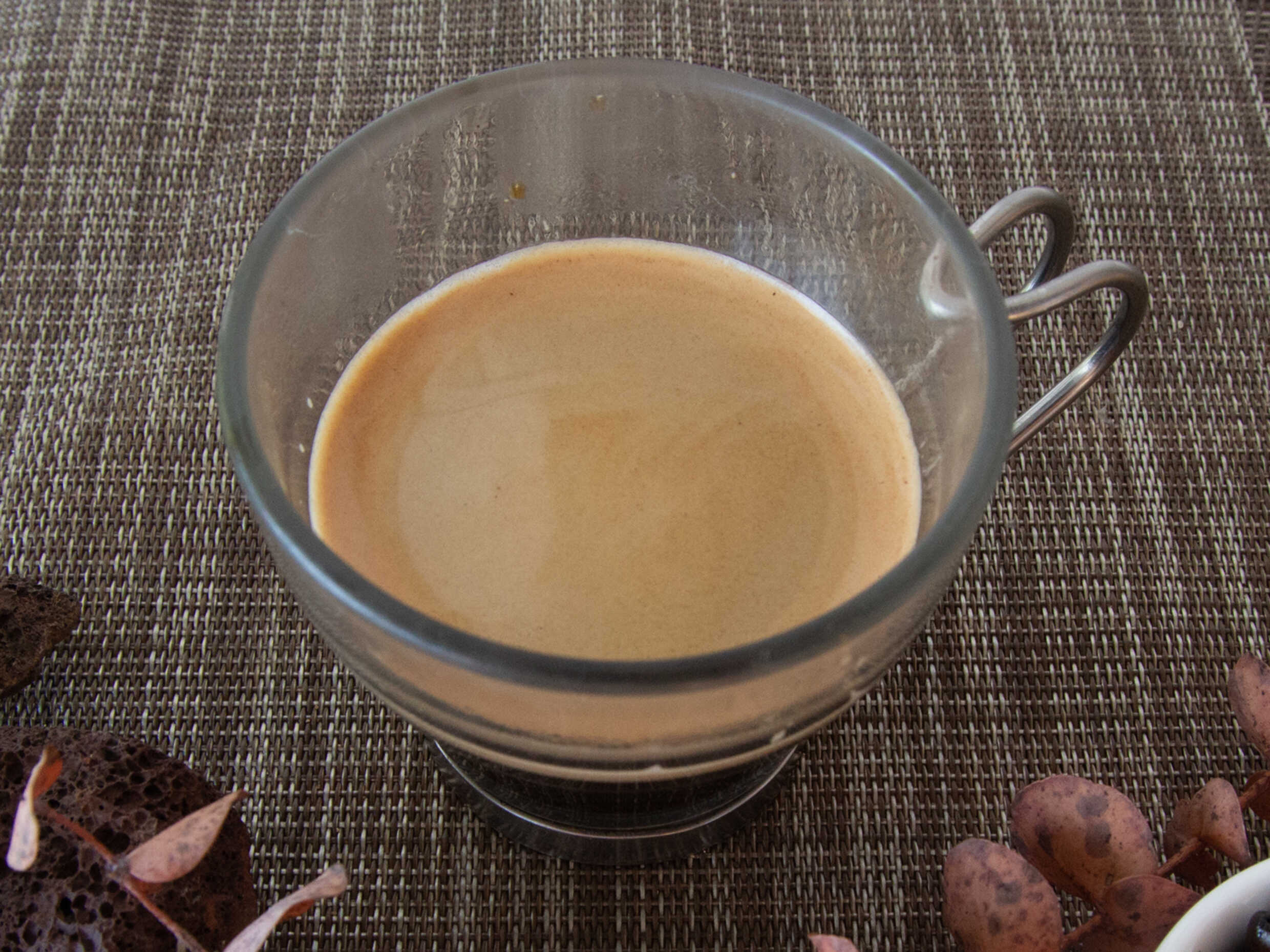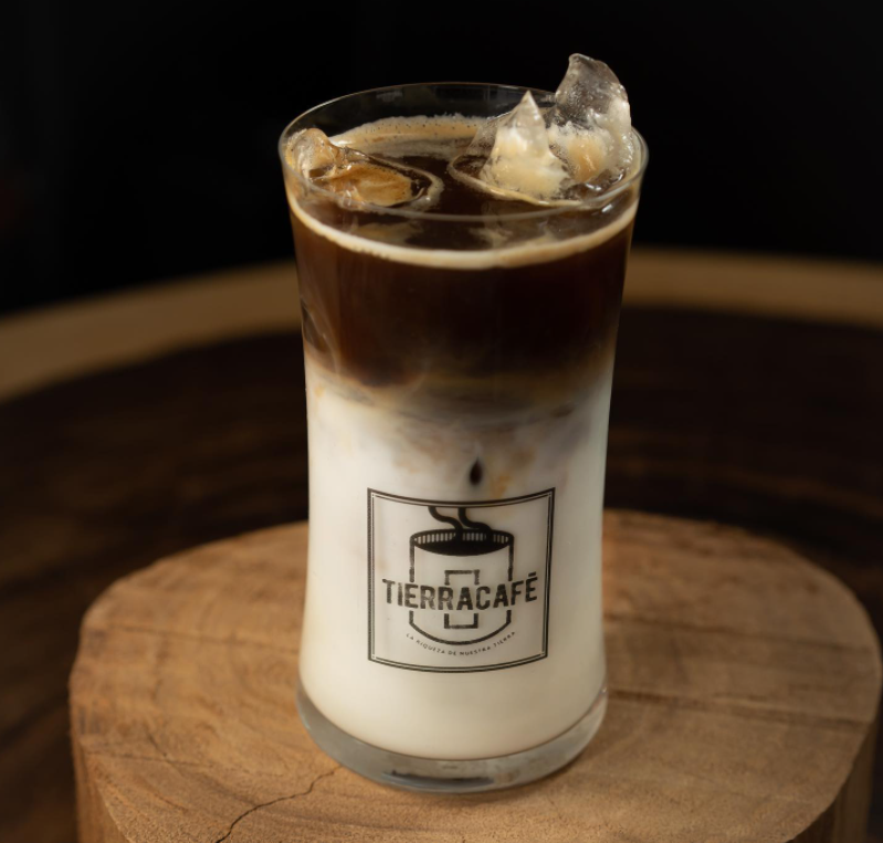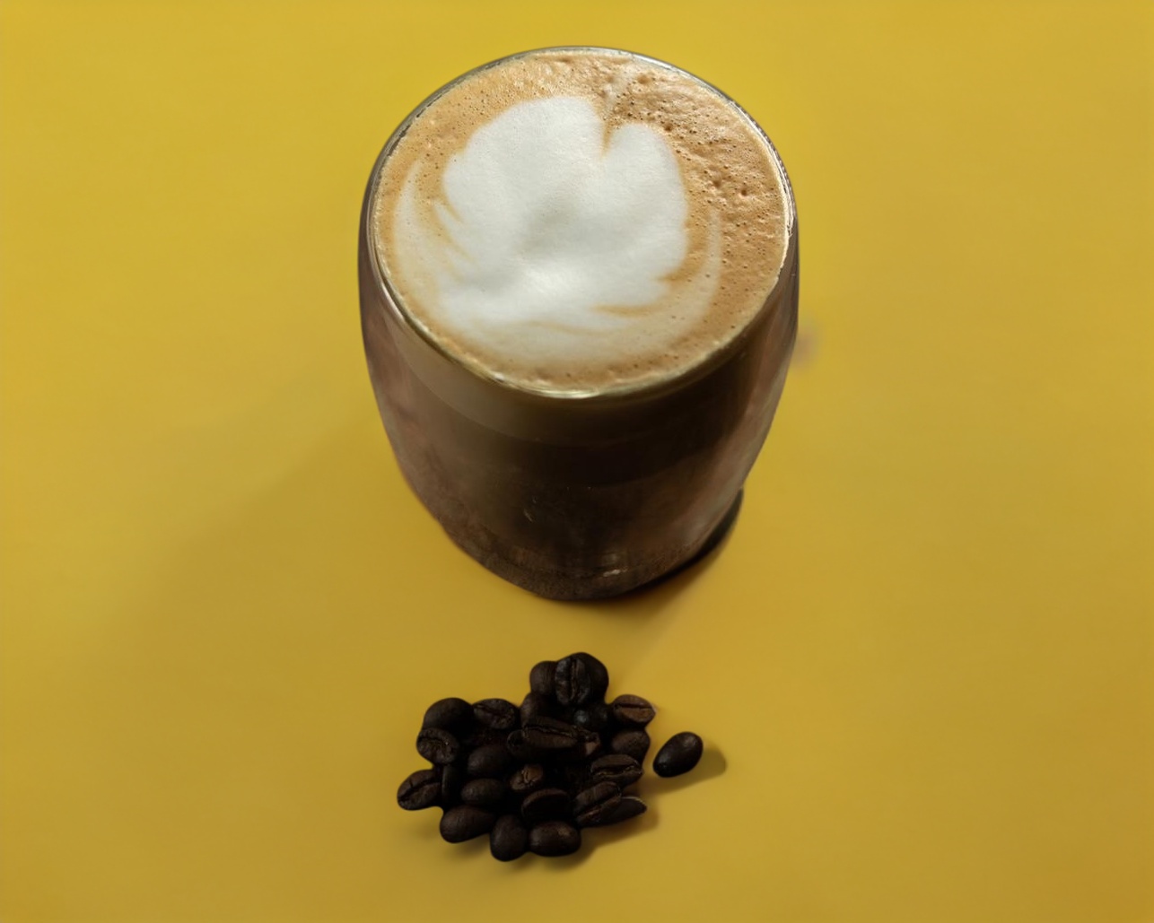 Cubos de hielo hechos de espresso + leche + 1 Espresso doble.