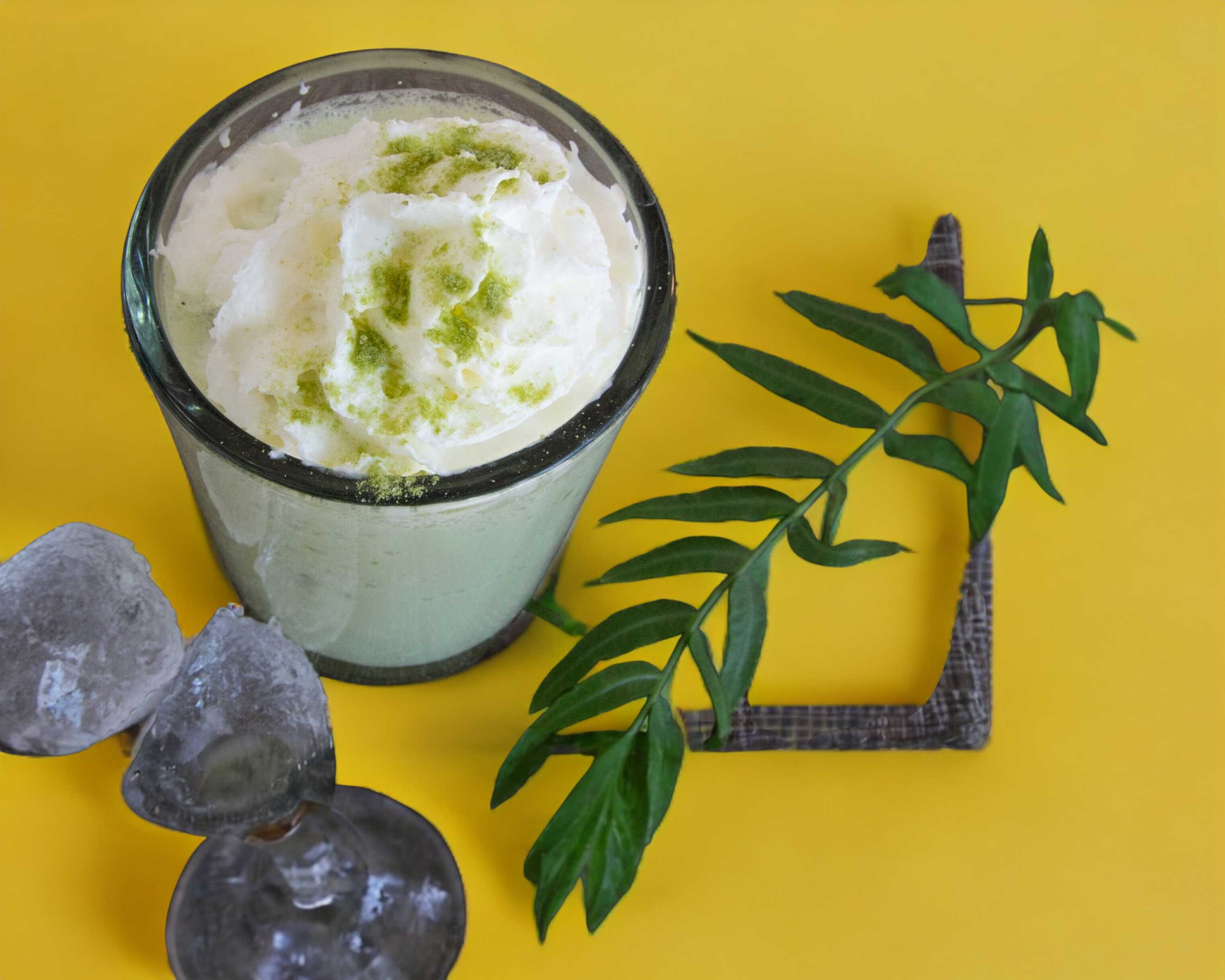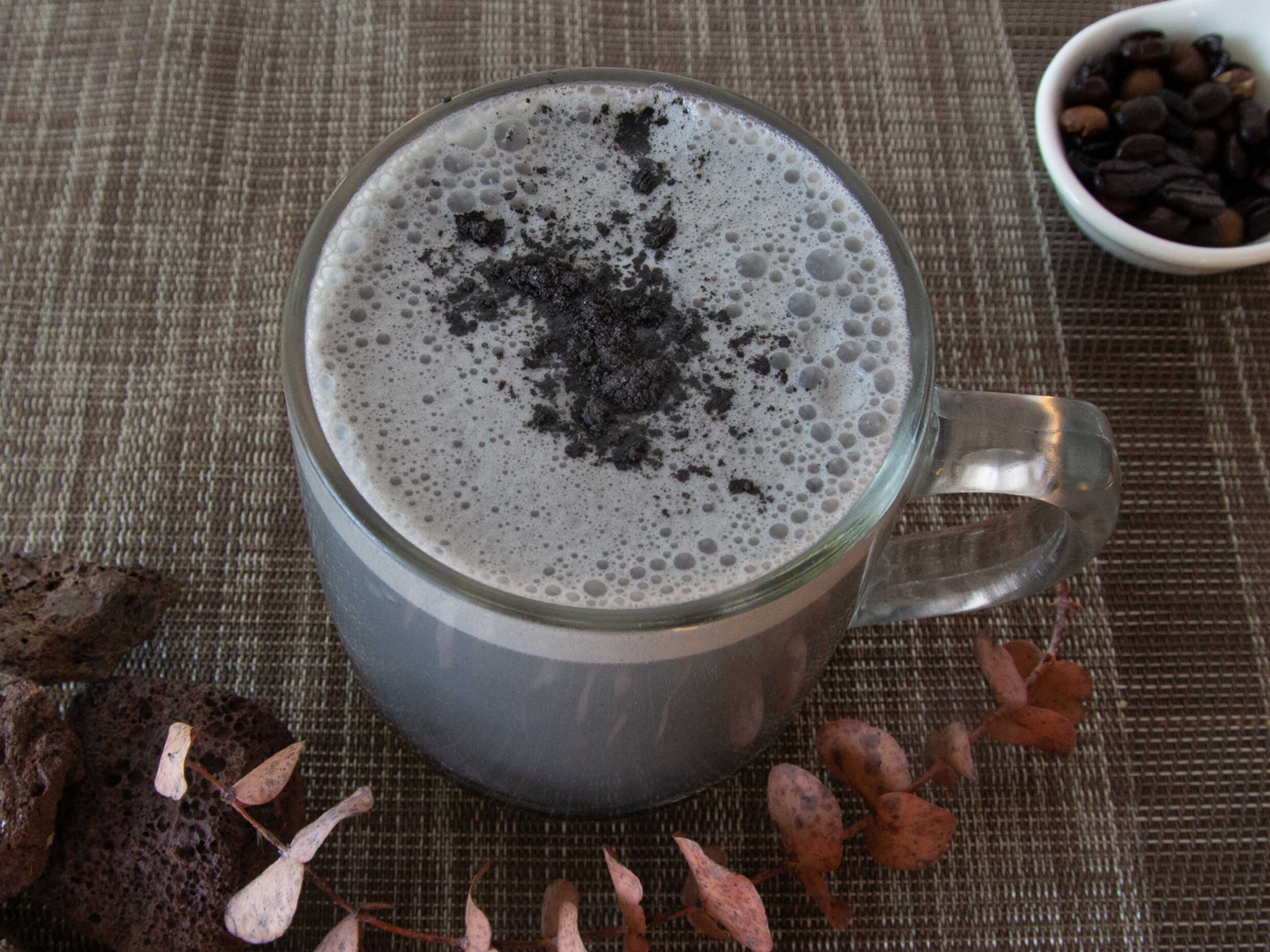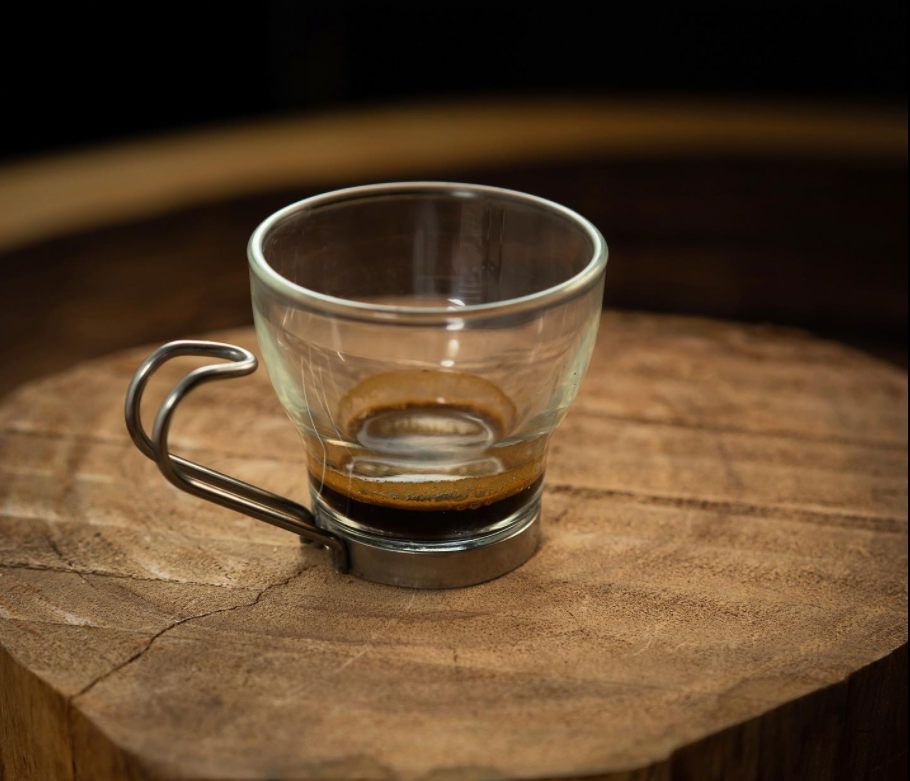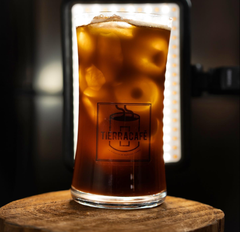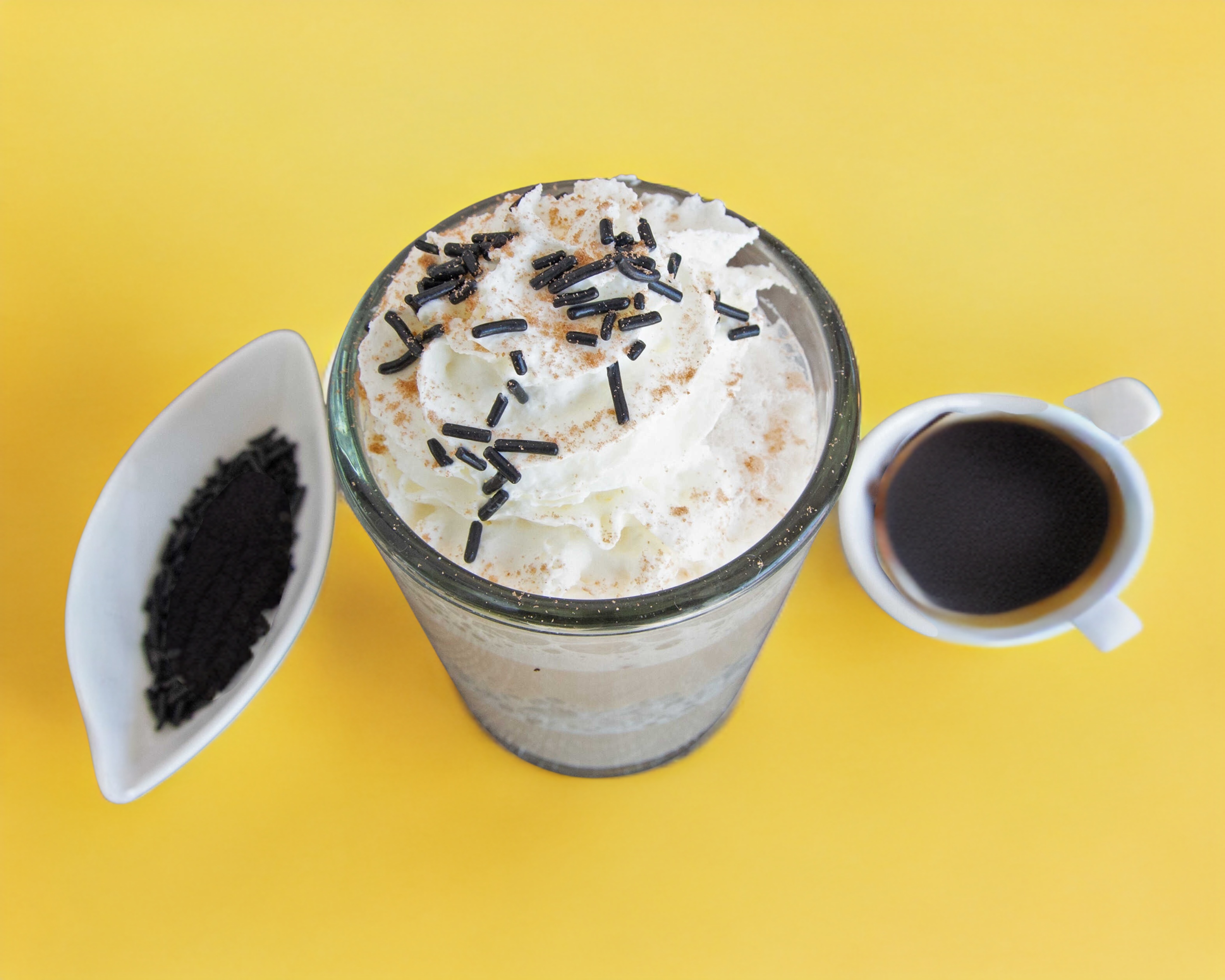 Cubos de hielo hechos de espresso + leche + 1 Espresso doble.