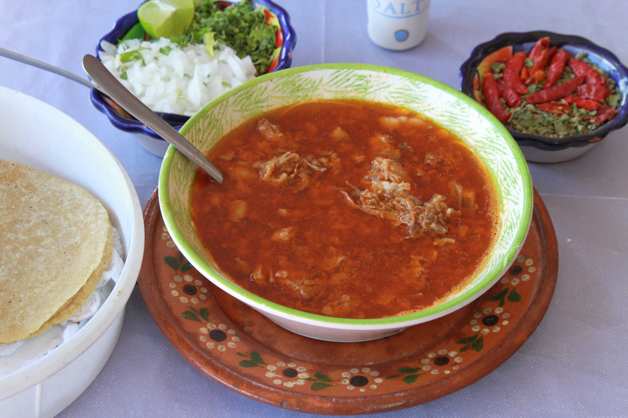 Estilo jalisco, incluye consomé y tortillas.