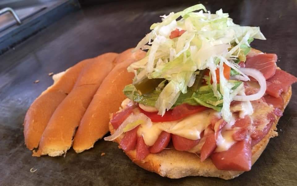 Carne de res, salchicha,jamón,tocino,queso asadero,queso amarillo, lechuga,jitomate,cebolla,chile envinagre