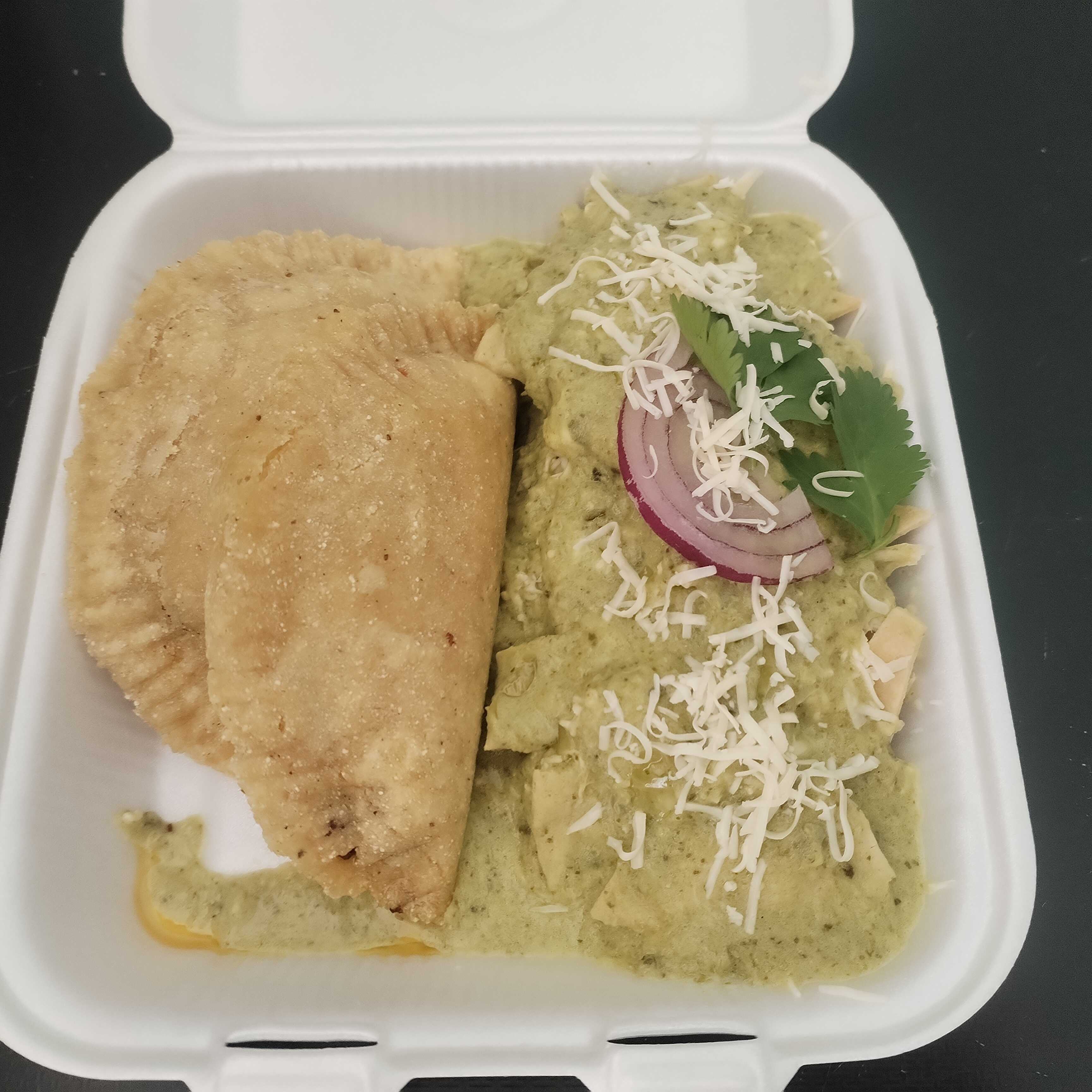 2 empanadas + chilaquiles verdes pollo