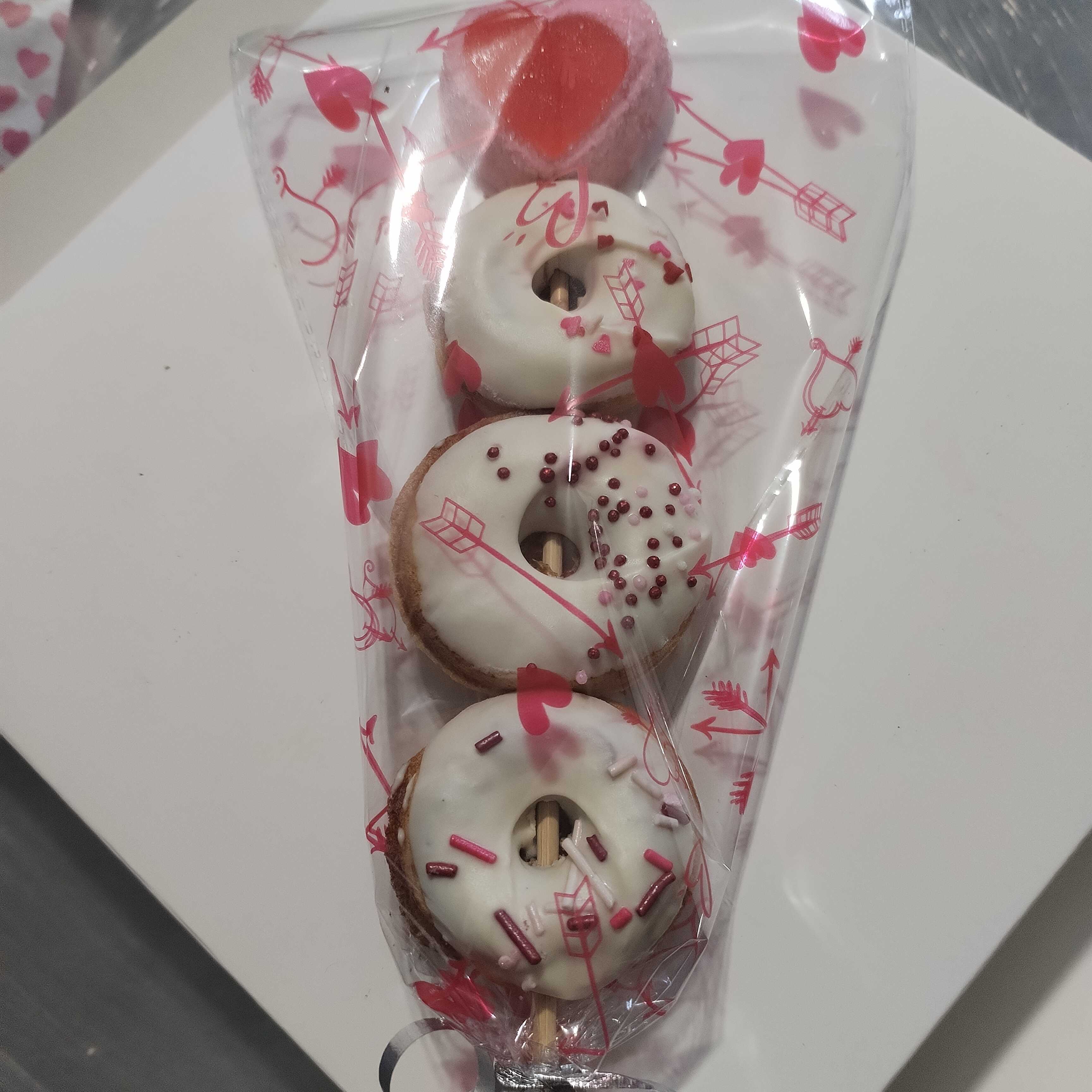 Brocheta con 3 mini donitas de vainilla con bombon
