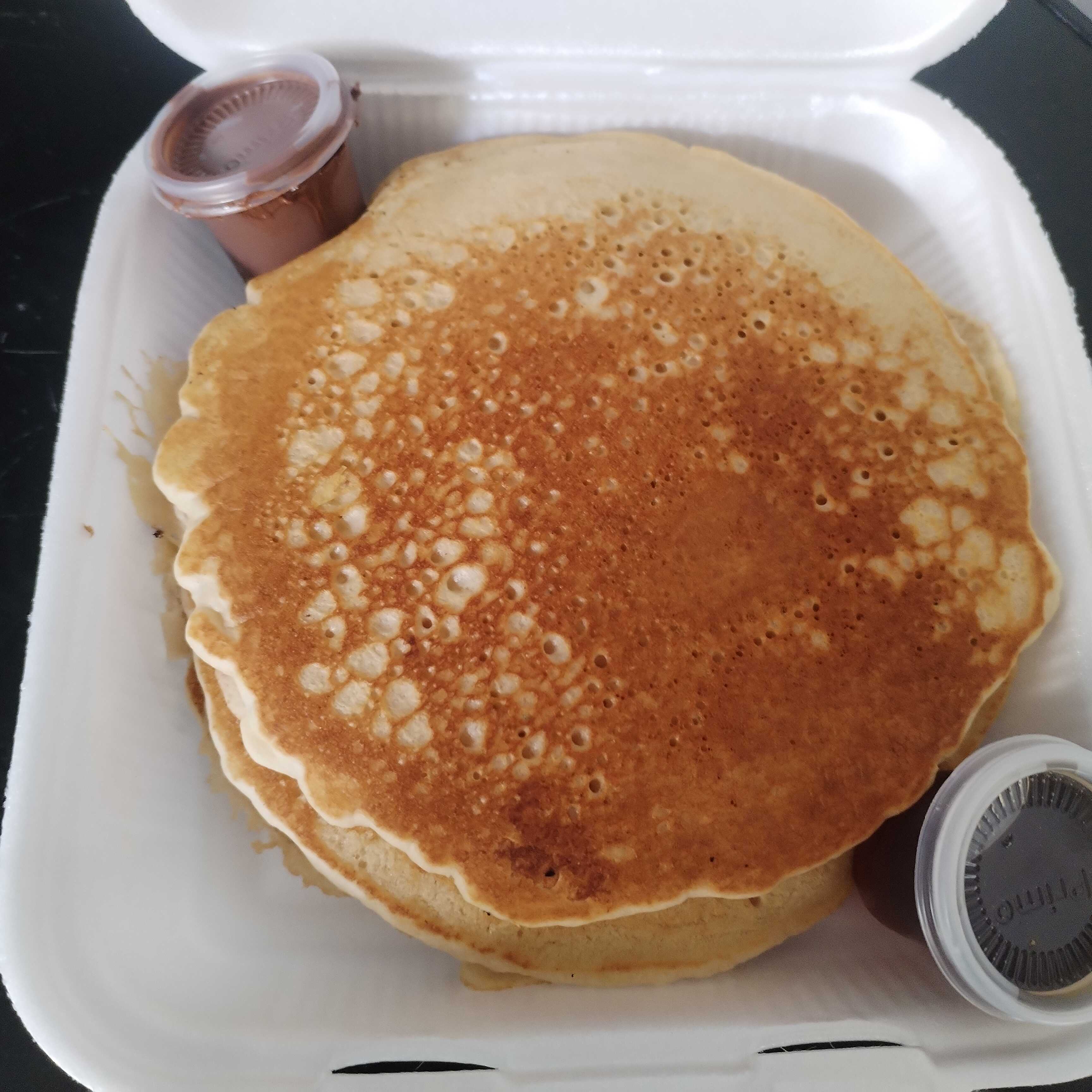 3 Hotcakes americanos medianos con maple y nutella, no incluye fruta