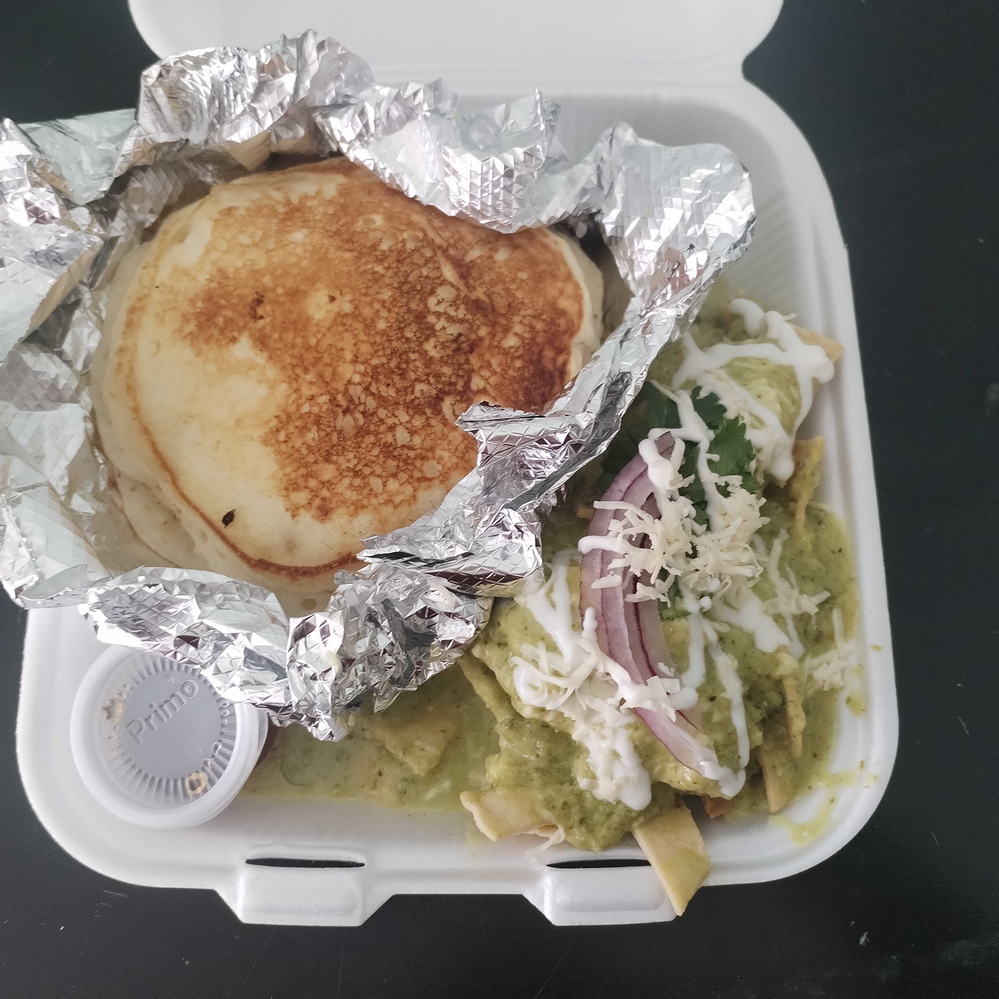 Hotcakes + chilaquiles