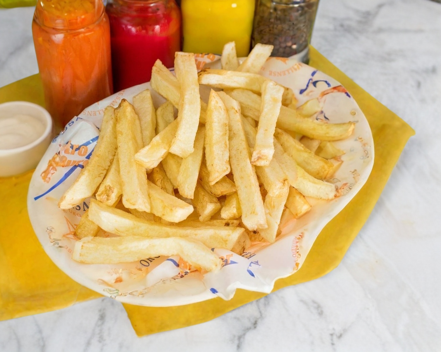 Hamburguesa con 2 carnes, lechuga, tomate, pepinillos, mayonesa y mostaza