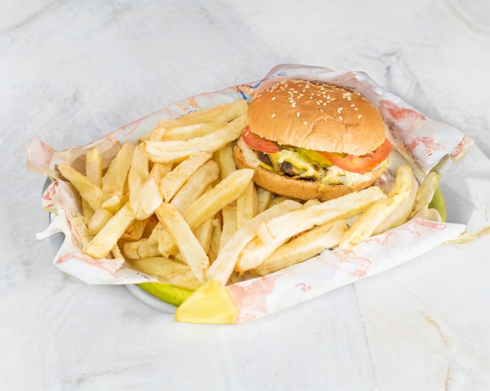 1 hamburguesa con queso, 1 orden de papas y 1 refresco.