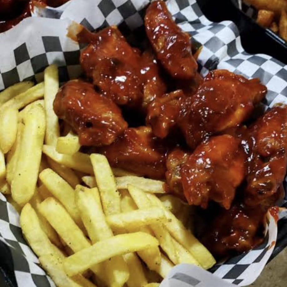 6 Boneless bañados en salsa de tu elección, acompañados de 120 g de papos ala francesa con un toque de lemon pepper y 1 bebida.