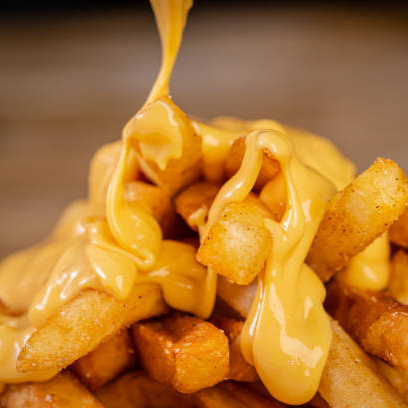 250 gr de papas ala francesa bañadas con queso amarillo espolvoreadas con lemon peper