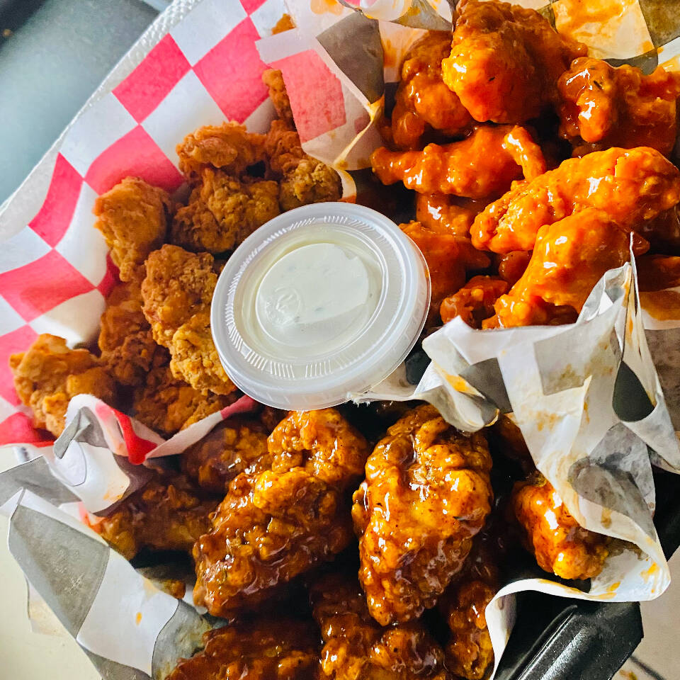 1KG de Boneless. Incluye aderezos, Zanahorias y Apio. Elige salsas a tu elección