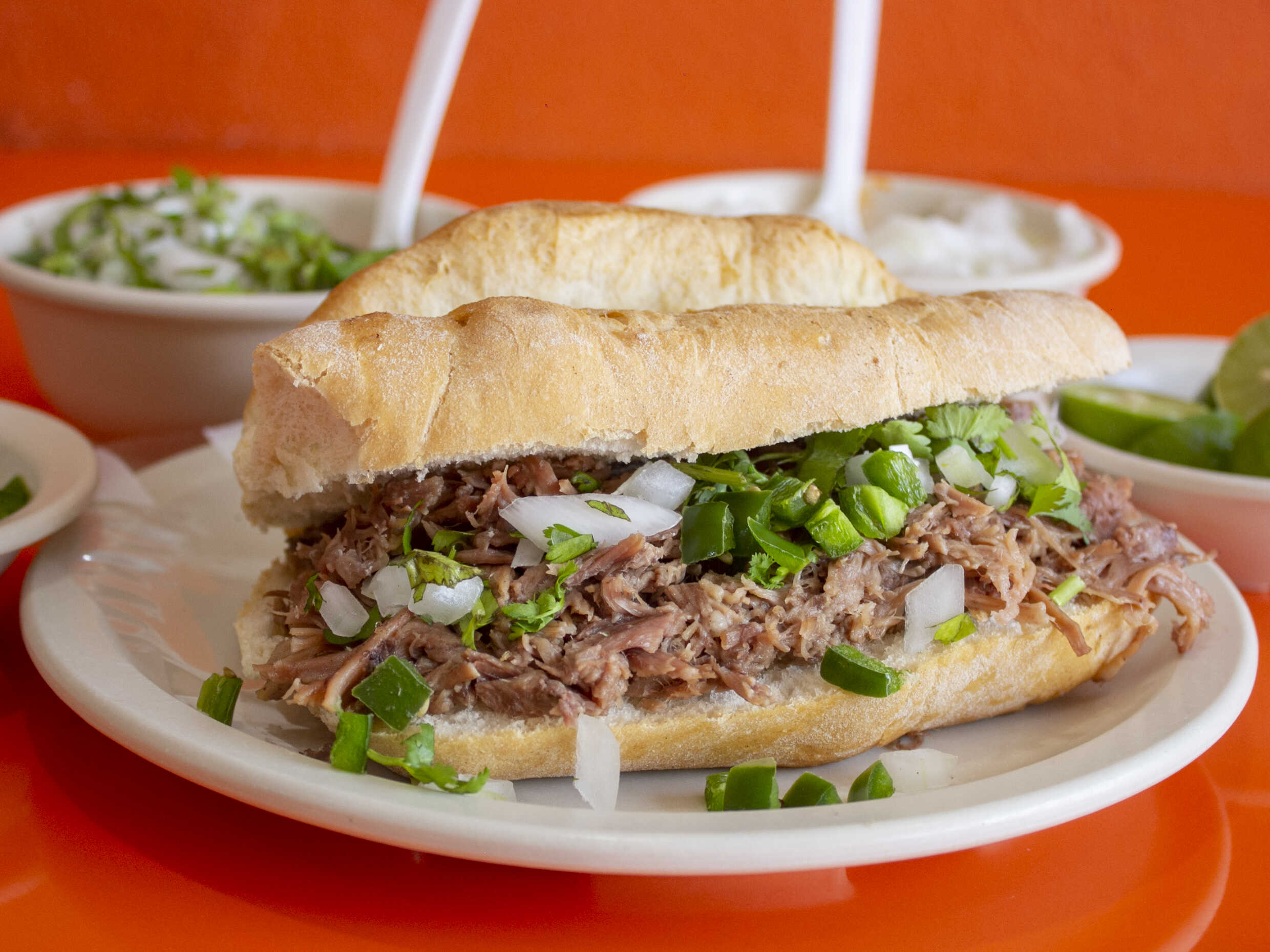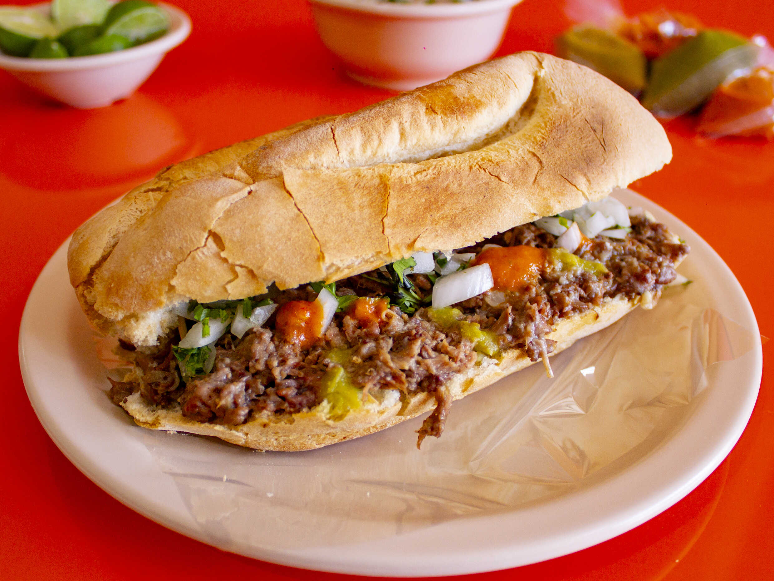 Torta a elegir, maciza, cebolla, cilantro y salsa.