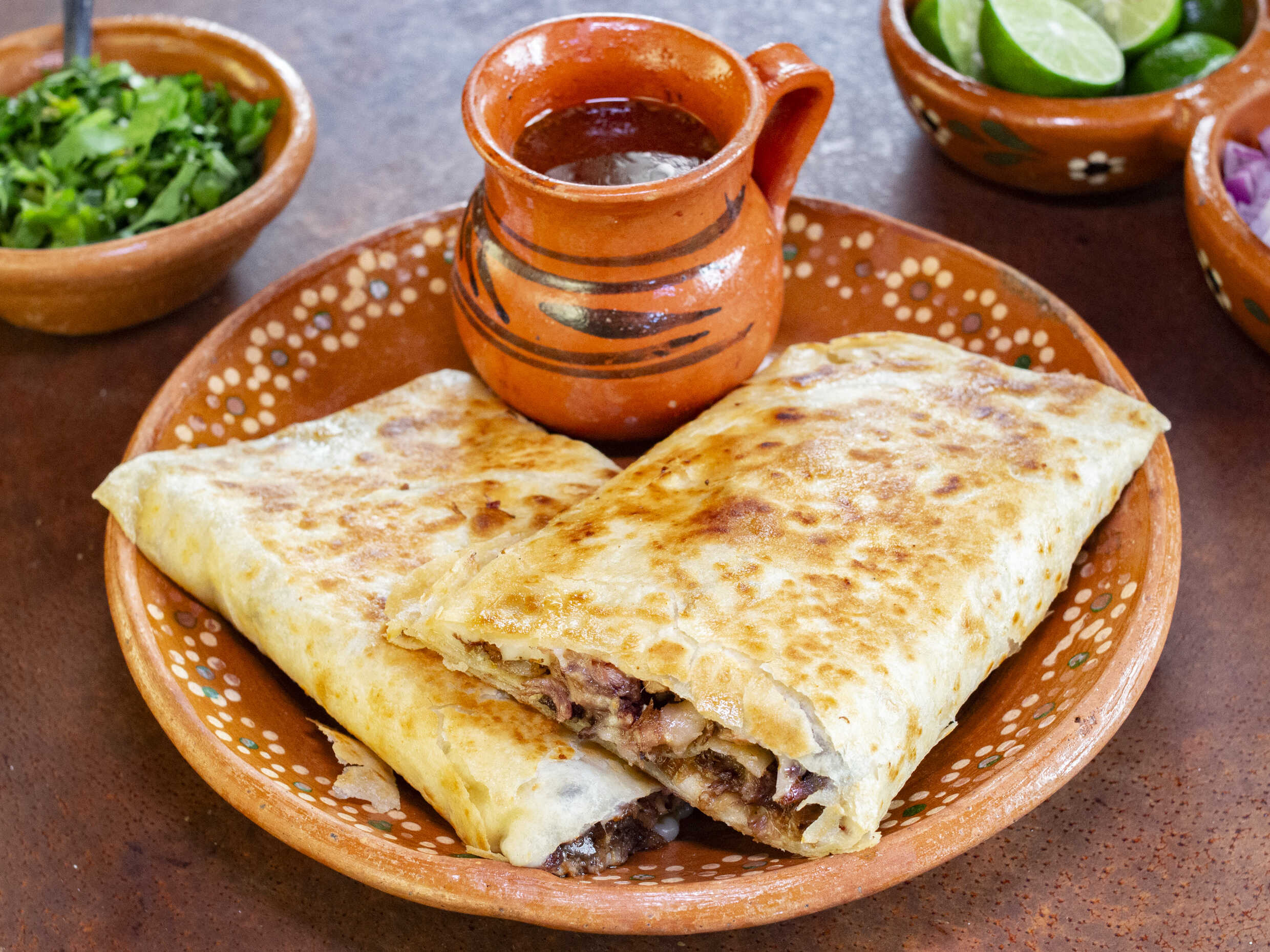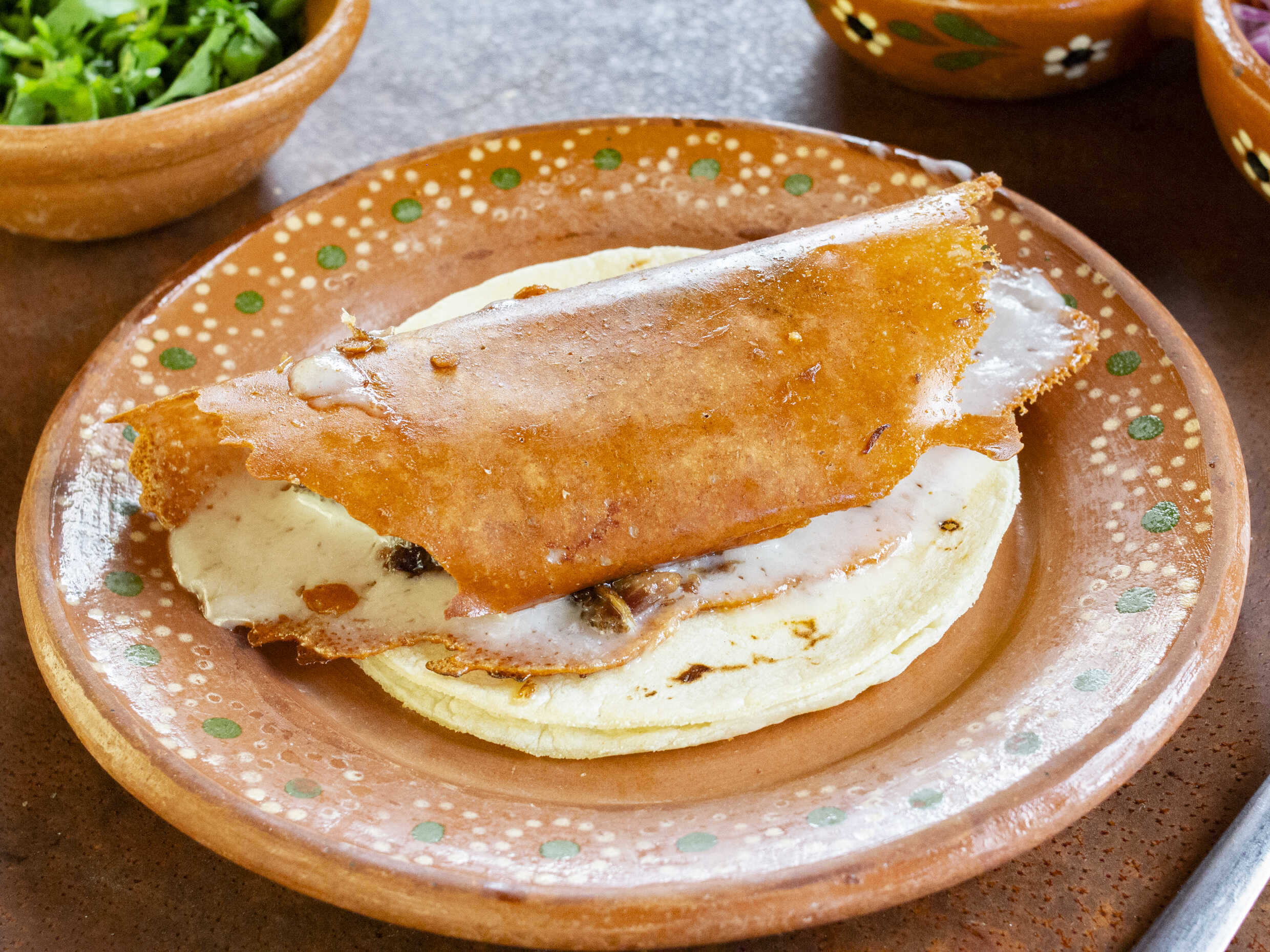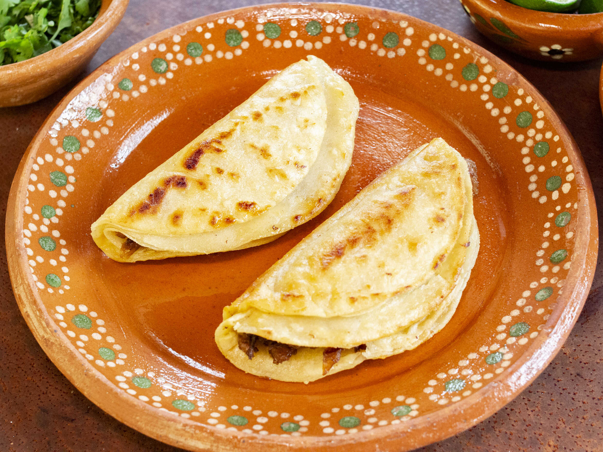 Elaborada con frijoles, carnitas, aparte de salsa de tomate, salsa picosa y cebolla