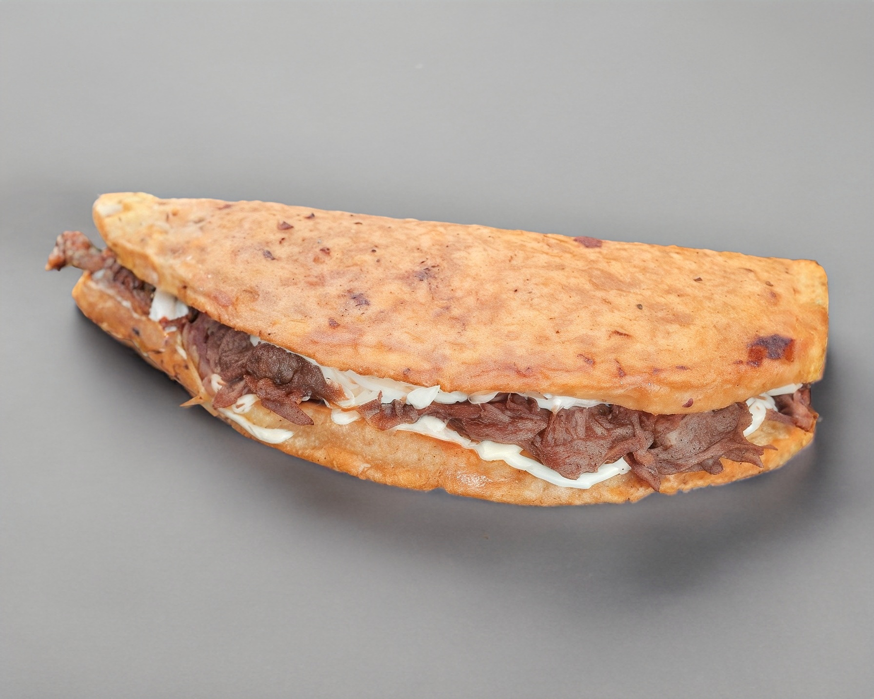 Tortilla taquera con birria de res dorada a la plancha