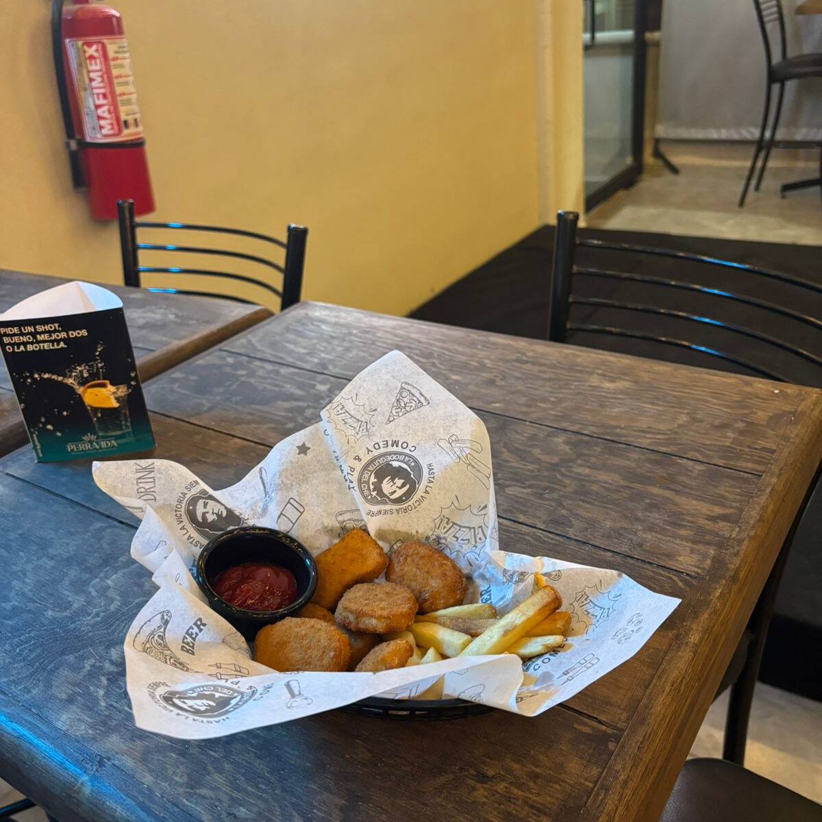 6 PZA DE NUGGETS ACOMPÑADO CON PAPAS A LA FRANCESA