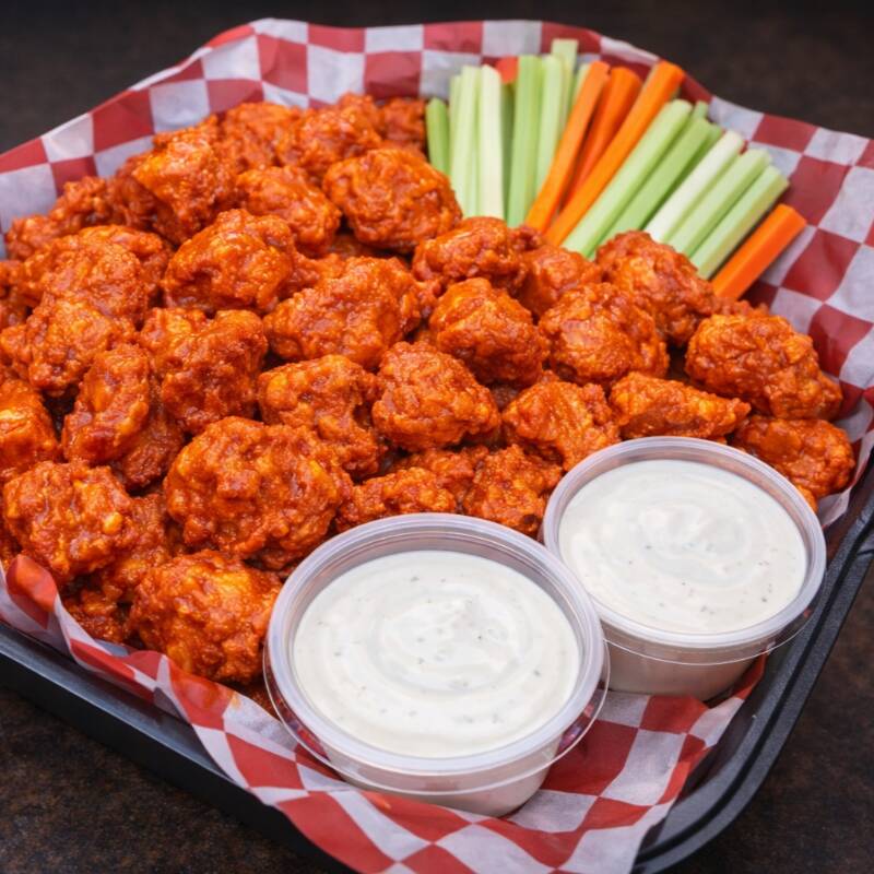 Alitas de pollo bañadas en la salsa de tu elección.