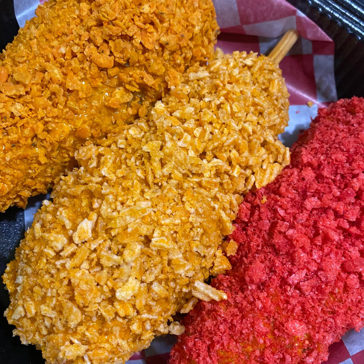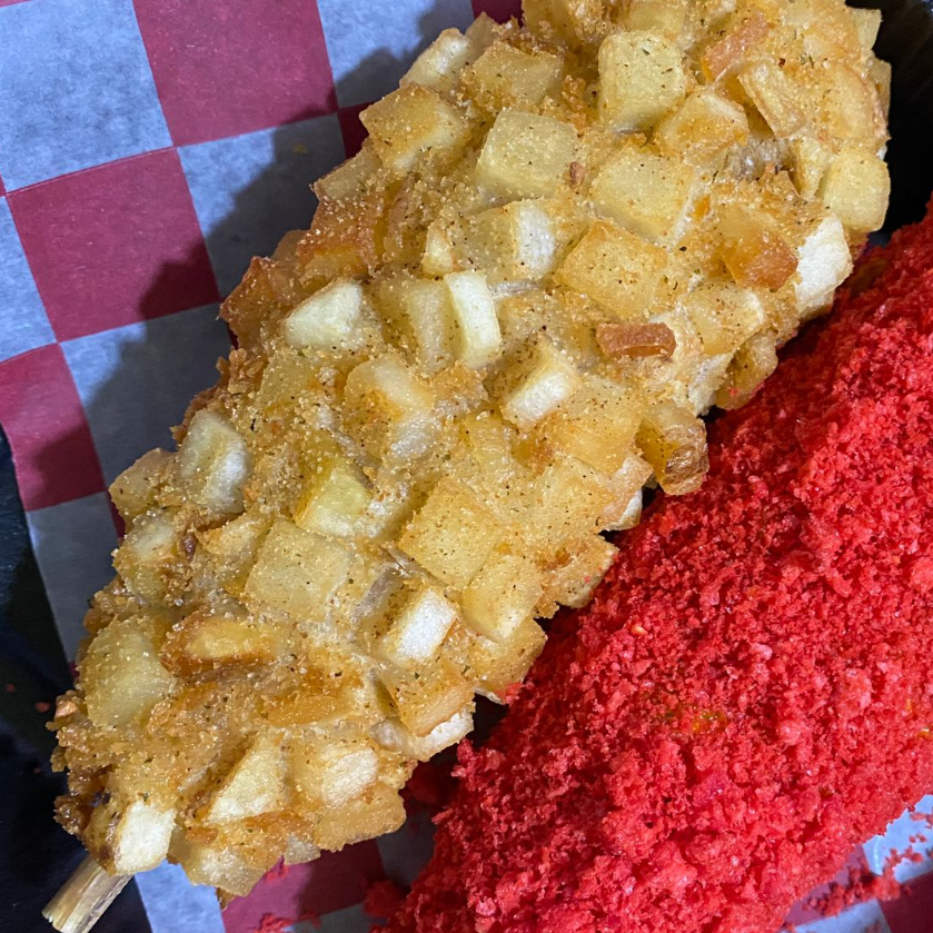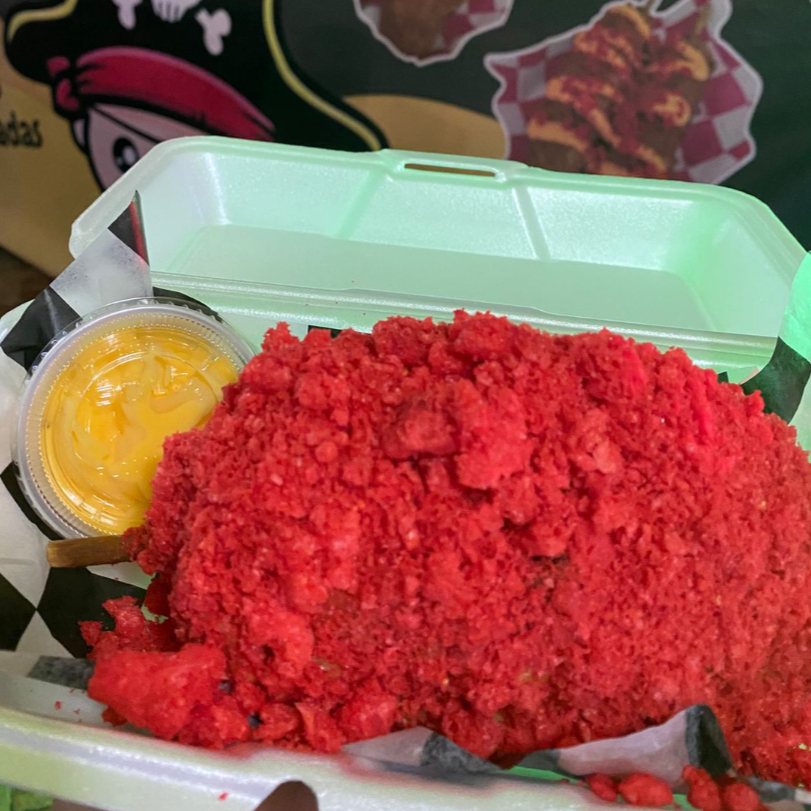 Empanizado de panko, papas a la francesa en cubitos y empanizada en las papitas de tu preferencia (doritos, cheetos flaming hot, ruffles, chips jalapeño y chips fuego)