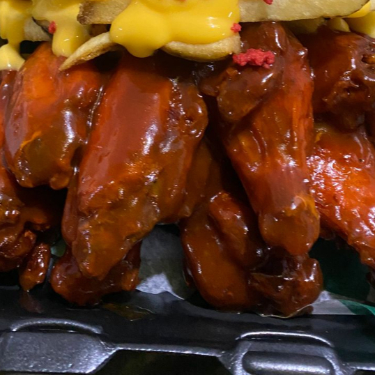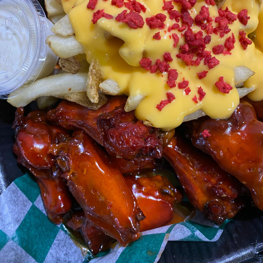 Incluye 7pzas de alitas en la salsa de tu preferencia, una porción de papas a la fracesa con queso amarillo y tocino deshidratado, zanahora y aderezo ranch