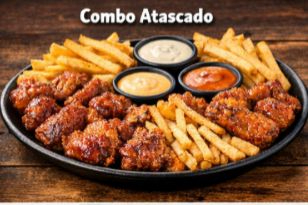 250 g Boneless, 250 g alitas, papas, 2 refrescos 400ml .