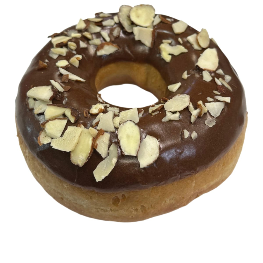Dona cubierta de chocolate HERSHEY con Trozos de almendra como topping