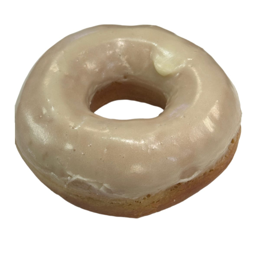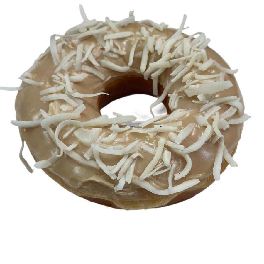 Dona con cubierta sabor vainilla-maple con coco rallado como topping
