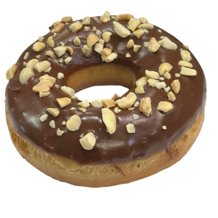 Dona cubierta de chocolate HERSHEY con Trozos de cacahuate como topping
