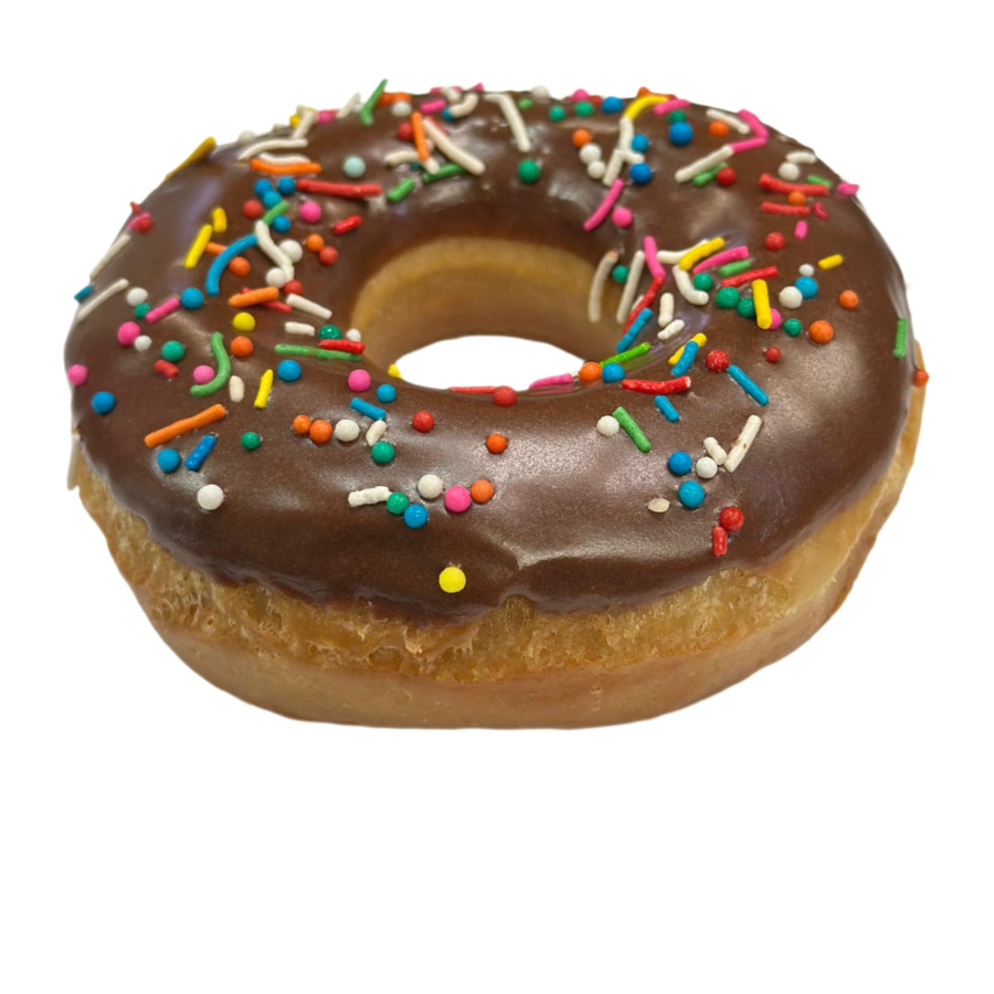 Dona cubierta de chocolate HERSHEY con gragea de colores como topping