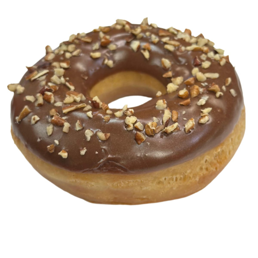 Dona cubierta de chocolate HERSHEY con Trozos de nuez como topping
