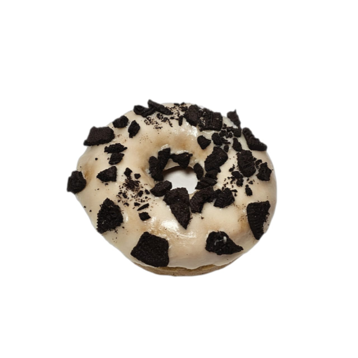 Dona con cubierta sabor mantequilla con Oreo en trozos como topping