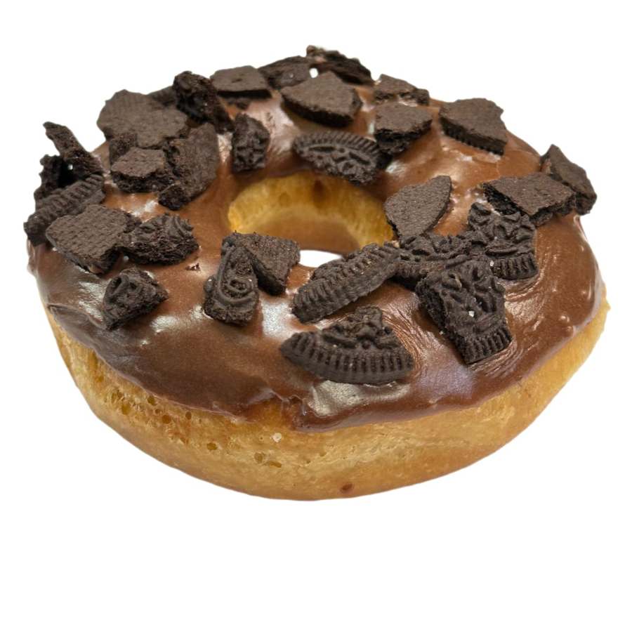 Dona cubierta de chocolate HERSHEY con Trozos de galleta OREO como topping