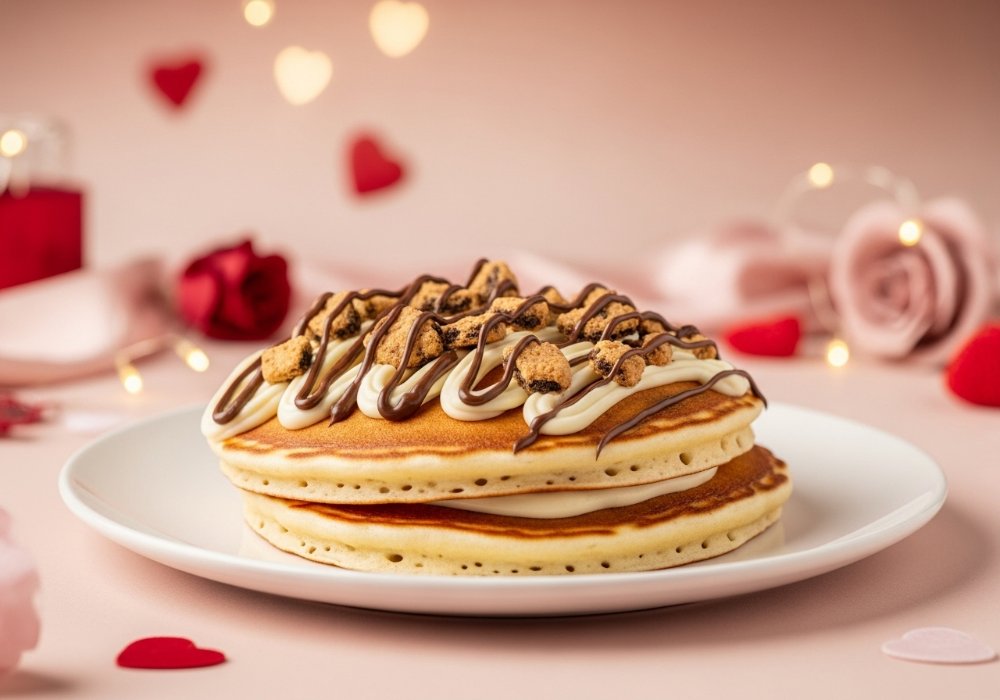 Deja que cupido derrita tu corazón con nuestros irresistibles Pancakes de Cheescake de Galleta. ¡La combinación perfecta para endulzar este San Valentín!