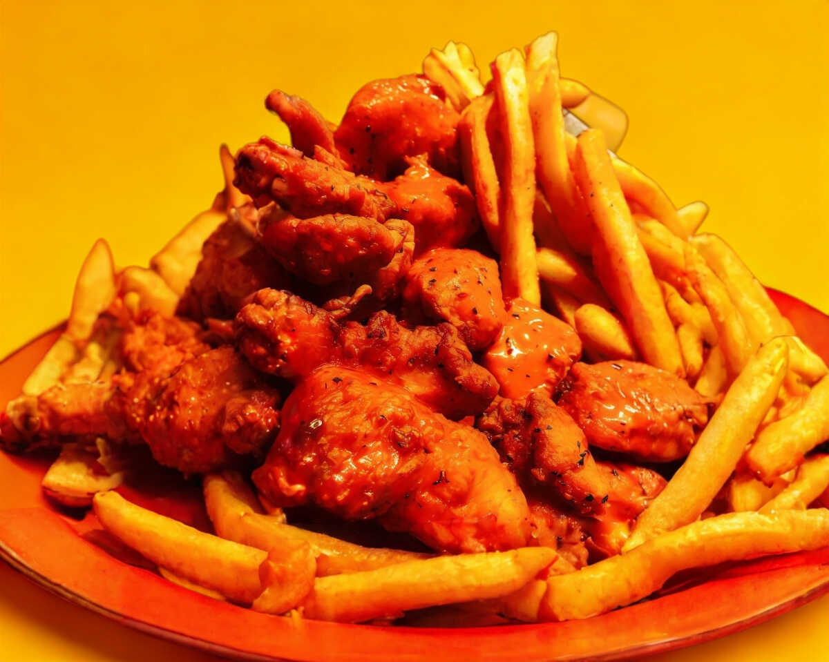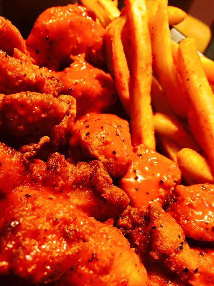 Trozos de pechuga de pollo empanizados y bañados en tu salsa favorita, incluye papas Lone 150 g a 200 g (sazonadas con nuestro Especial Blend). Plato personal