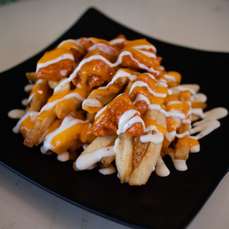 20 mini boneless y 300 gr de papas bañadas en salsa de su elección, queso y ranch.