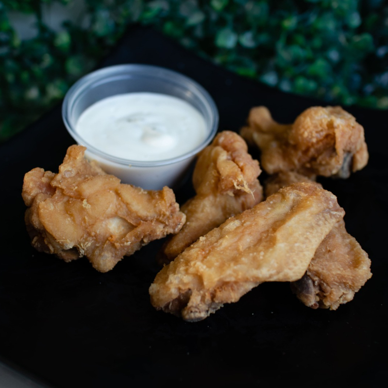 5 Alitas en la salsa de su eleccion, incluye ranch